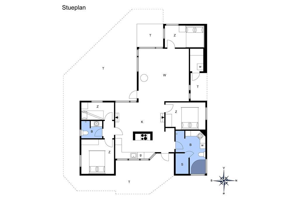 I dette rummelige og smagfuldt indrettede sommerhus er de fire soveværelser fordelt, så huset er velegnet til to vennepar såvel som to familier. Huset byder på to badeværelser, hvoraf det ene råder over spabad og sauna, og et dejligt stort køkken, som er adskilt fra spiseafdelingen ved en halvmur. Vil man nyde morgenmaden i det fri, vil terrassen udenfor køkkenet være et perfekt sted. Fra køkkenafdelingen går man ind i den bagvedliggende stue med brændeovn. Stuen er rummelig og lys, og herfra har man adgang til den flotte træterrasse med udsigt over et stort fredet naturareal.
