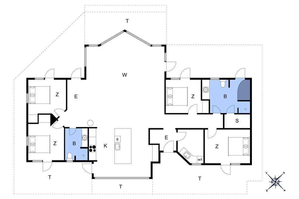 Dette topmoderne sommerhus er meget smagfuldt indrettet. Det er tydeligt, at her er kælet for detaljerne, og at alt fra materialer til indretning er nøje overvejet og udført med kærlighed. I stuen og køkkenet er der store panoramavinduer, som giver et fantastisk lysindfald og en flot udsigt over klitterne. Sommerhuset har 2 badeværelser, hvoraf det største er med sauna og spabad, og i alle 4 soveværelser er der store panoramavinduer, som lukker lyset ind og giver adgang til husets terrasser. Det 5. soveværelse er en hems med 2 madrasser. Overalt kan man logge på det trådløse og gratis internet, og viser vejret sig en dag fra den kølige side, er det hyggeligt at tænde op i brændeovnen, og fordybe sig i avisen eller en god bog.