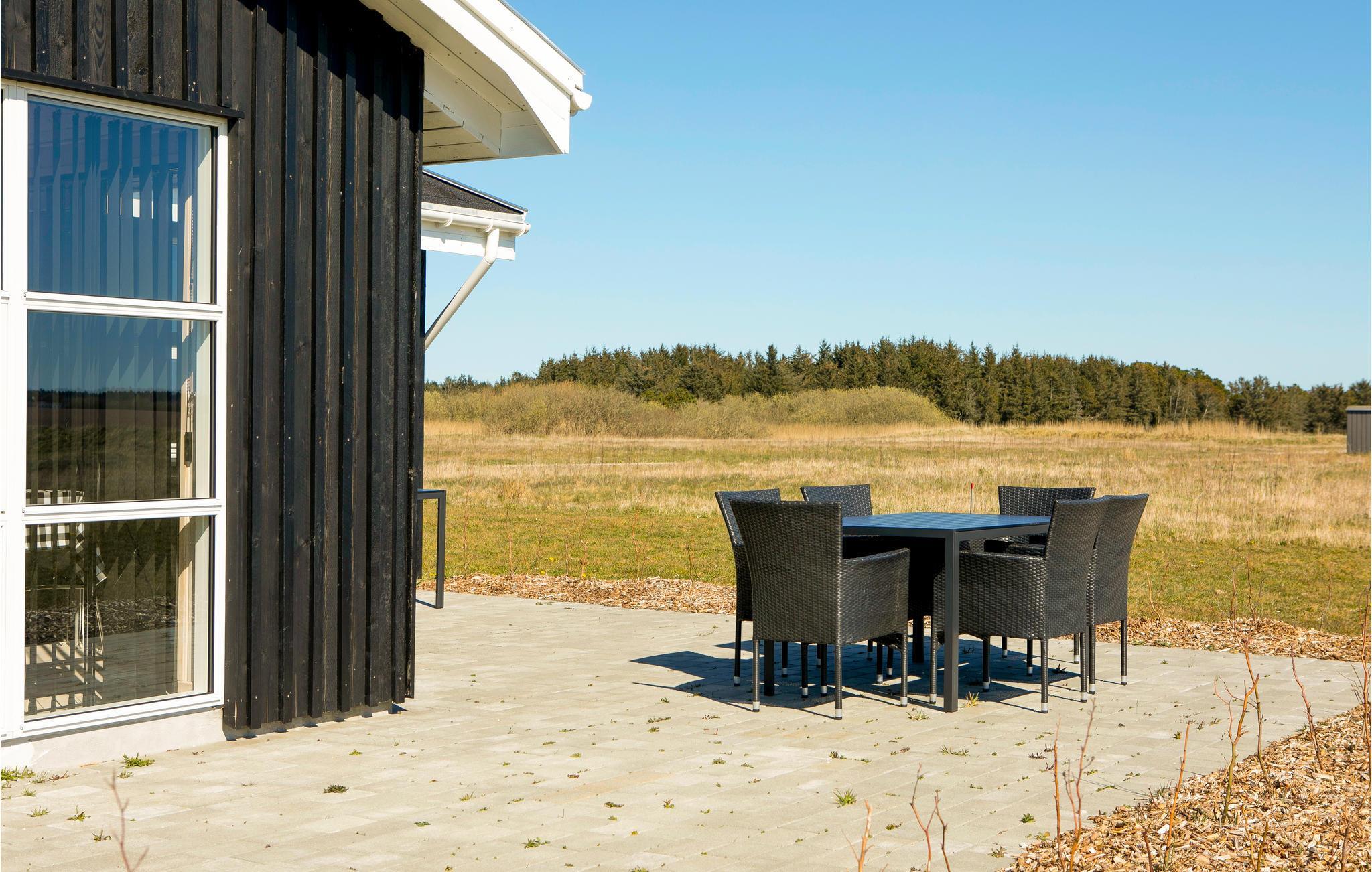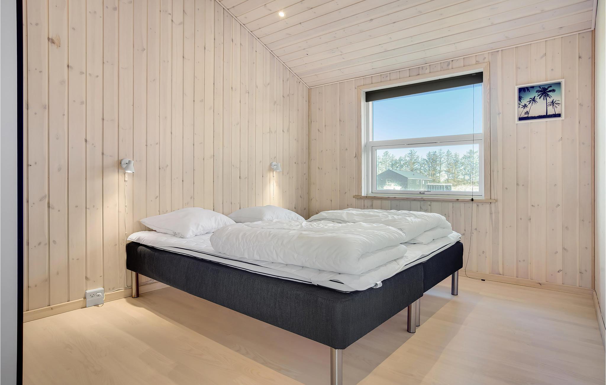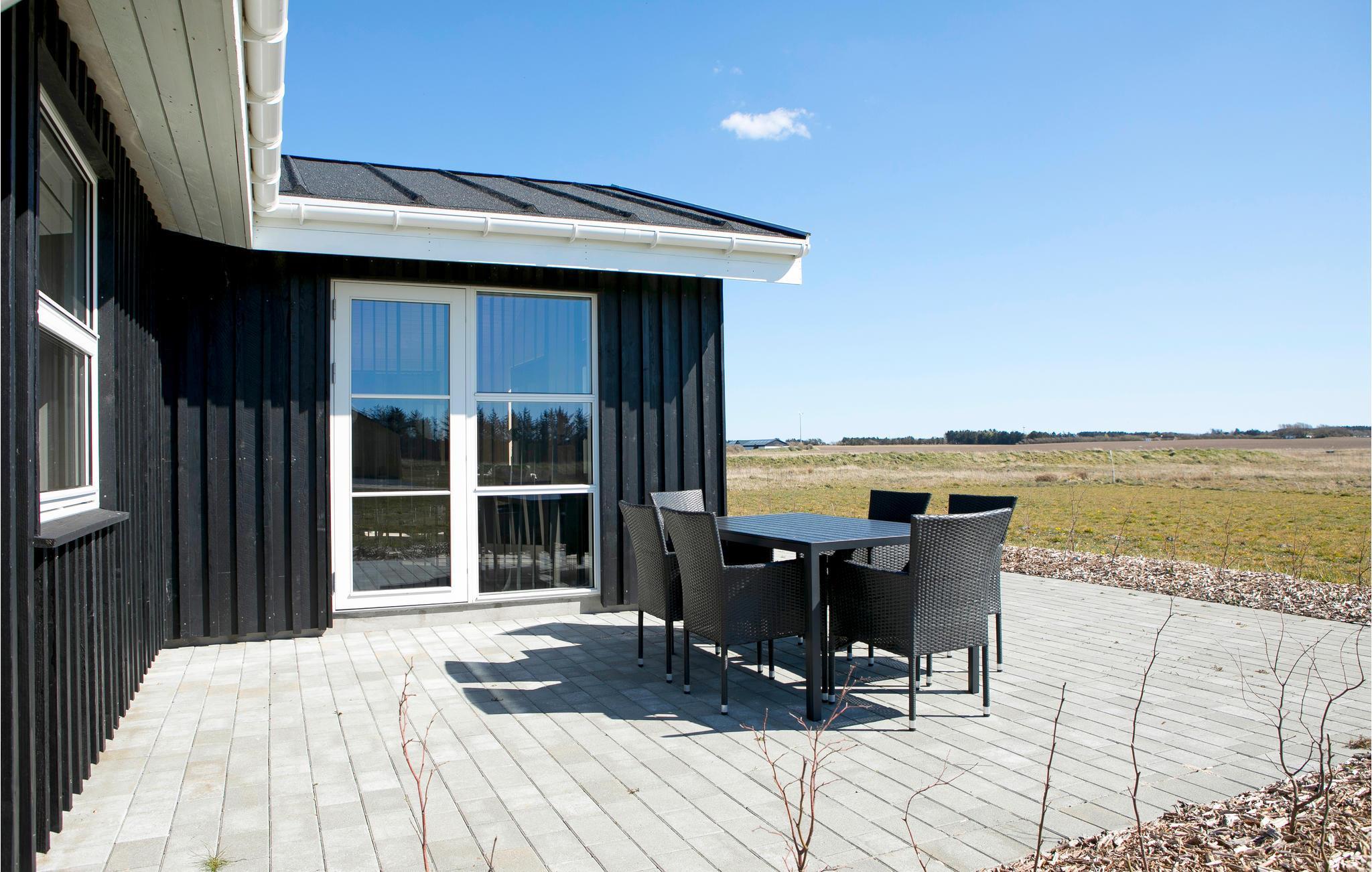 På en stor åben grund og i gåafstand til det fascinerende Vesterhav ved Grønhøj, ligger dette skønne feriehus. Huset byder på 4 gode, store soveværelser og 2 badeværelser, det ene med spabad og det andet med sauna. I husets kerne ligger køkkenet i tilknytning til den store, lyse og hyggelige stue. Her kan familien samles om madlavningen, mens andre hygger sig med spil eller en god bog. På den dejlige terrasse kan I nyde en god kop kaffe, mens børn og barnlige sjæle boltrer sig i haven. Endvidere er der lavet et dejligt anneks i tilknytning til huset. Her findes et godt soveværelse, et gæstetoilet samt et aktivitetsbord, hvor der kan dystes i diverse spil. Imellem huset og annekset er der lavet en skøn lille solgård, hvor I kan nyde solstrålerne i læ for vinden.