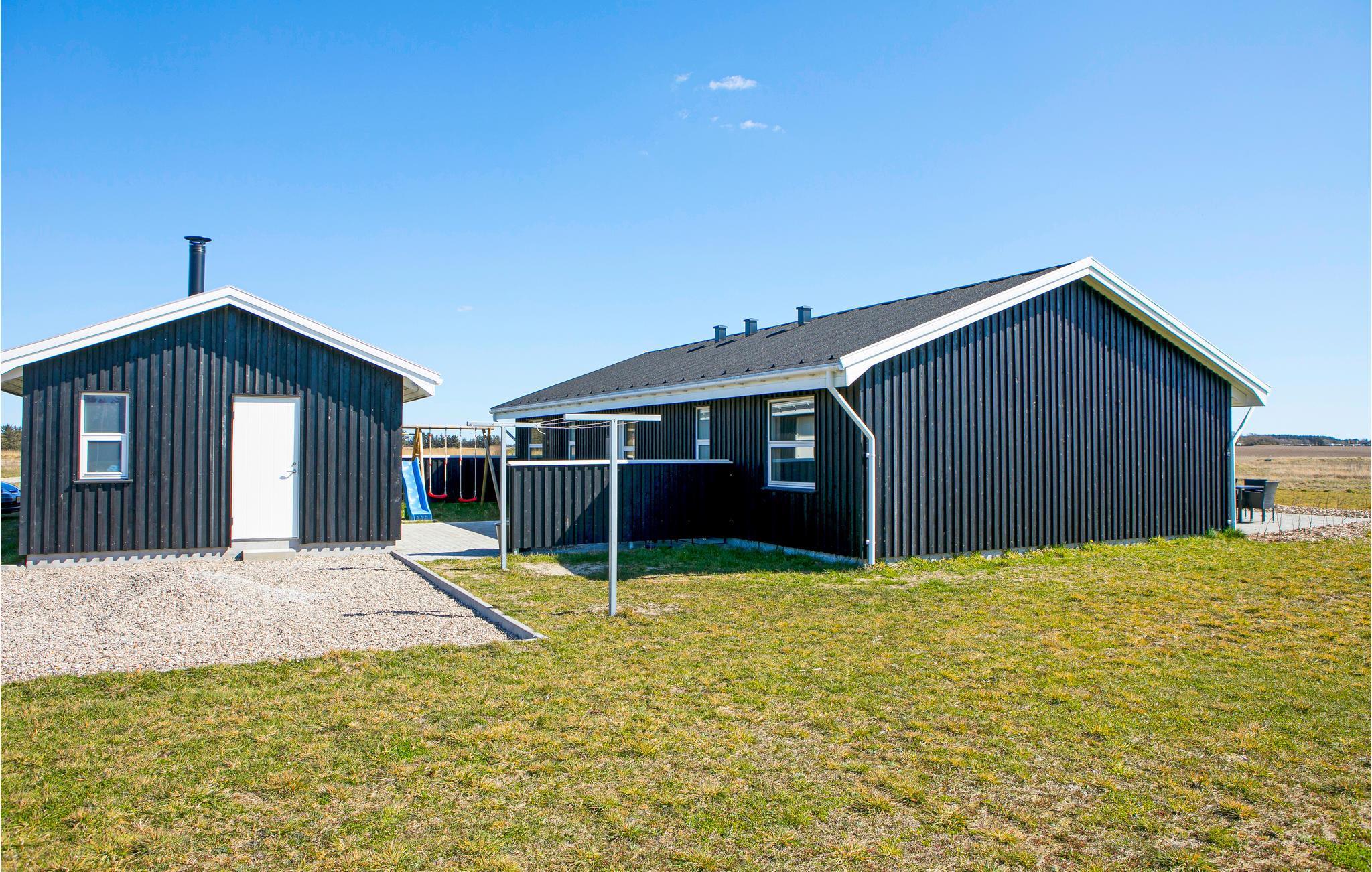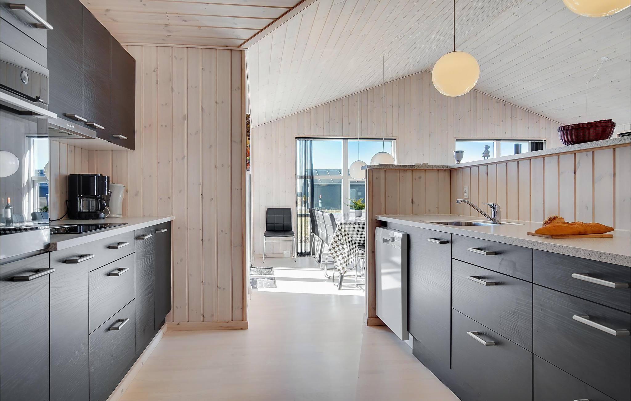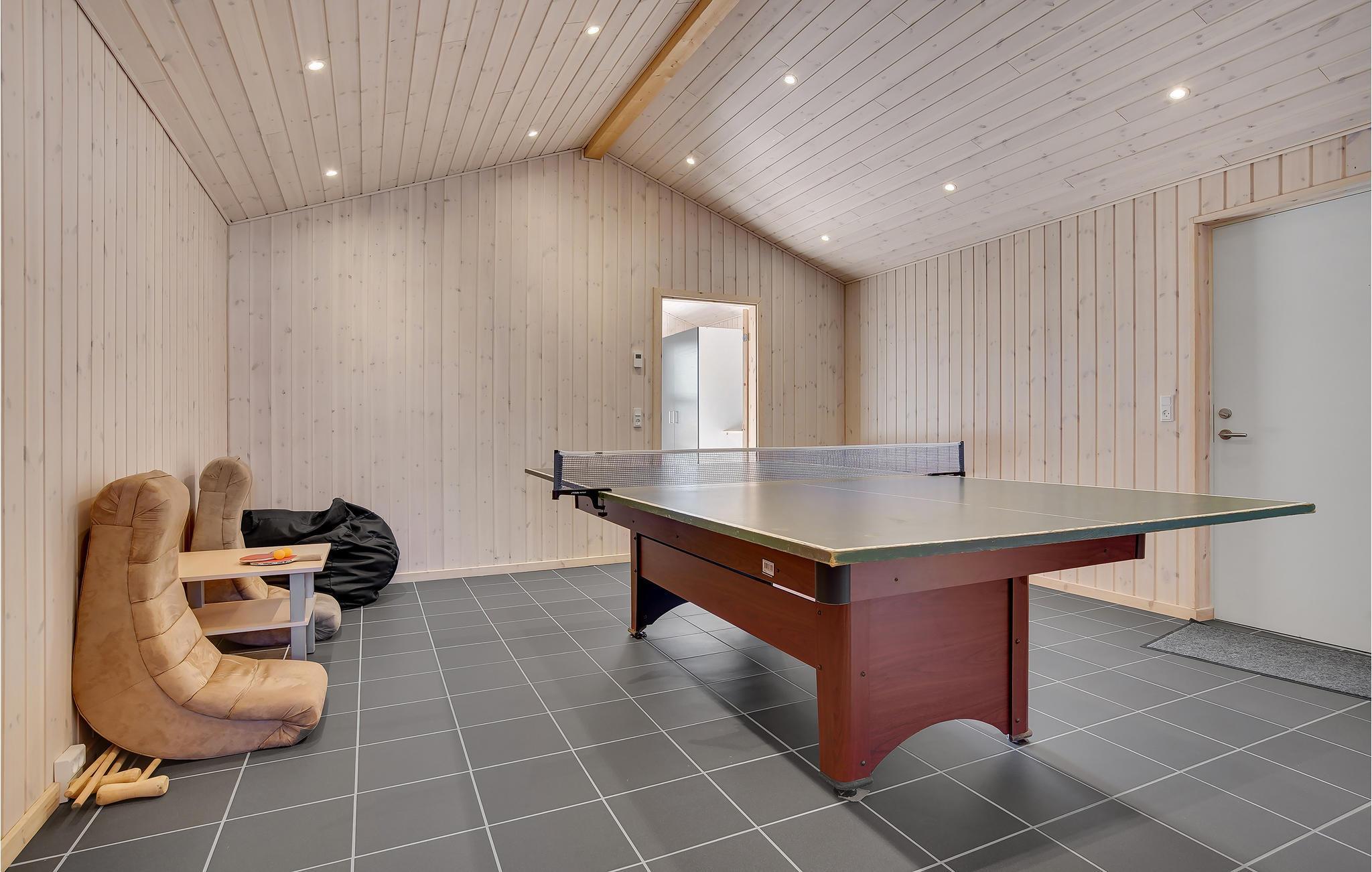 På en stor åben grund og i gåafstand til det fascinerende Vesterhav ved Grønhøj, ligger dette skønne feriehus. Huset byder på 4 gode, store soveværelser og 2 badeværelser, det ene med spabad og det andet med sauna. I husets kerne ligger køkkenet i tilknytning til den store, lyse og hyggelige stue. Her kan familien samles om madlavningen, mens andre hygger sig med spil eller en god bog. På den dejlige terrasse kan I nyde en god kop kaffe, mens børn og barnlige sjæle boltrer sig i haven. Endvidere er der lavet et dejligt anneks i tilknytning til huset. Her findes et godt soveværelse, et gæstetoilet samt et aktivitetsbord, hvor der kan dystes i diverse spil. Imellem huset og annekset er der lavet en skøn lille solgård, hvor I kan nyde solstrålerne i læ for vinden.
