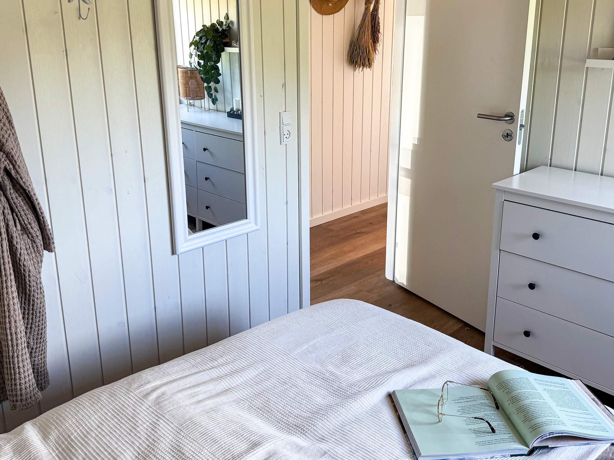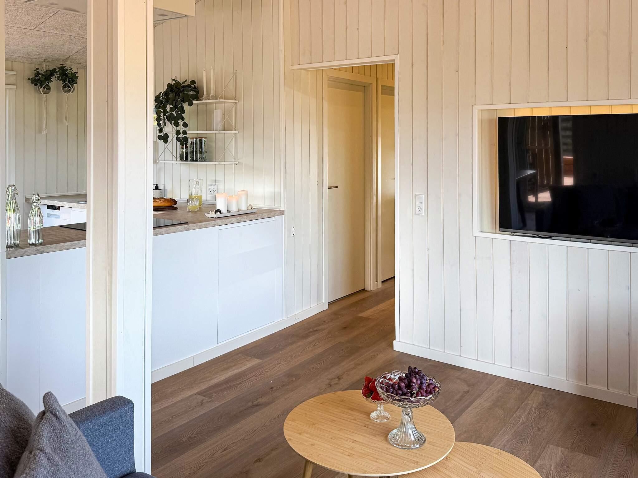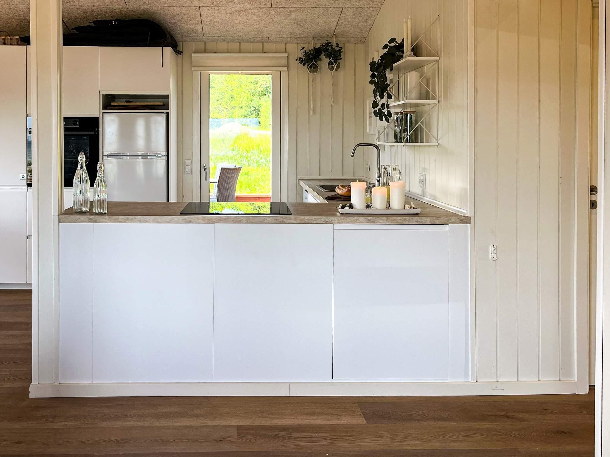 Det har et dejligt udendørskøkken, ideelt til madlavning og spisning om sommeren. Indenfor er der en hyggelig alkove med to sovepladser, et fjernsyn og en smuk udsigt over havet - perfekt til afslapning efter en dag på stranden.