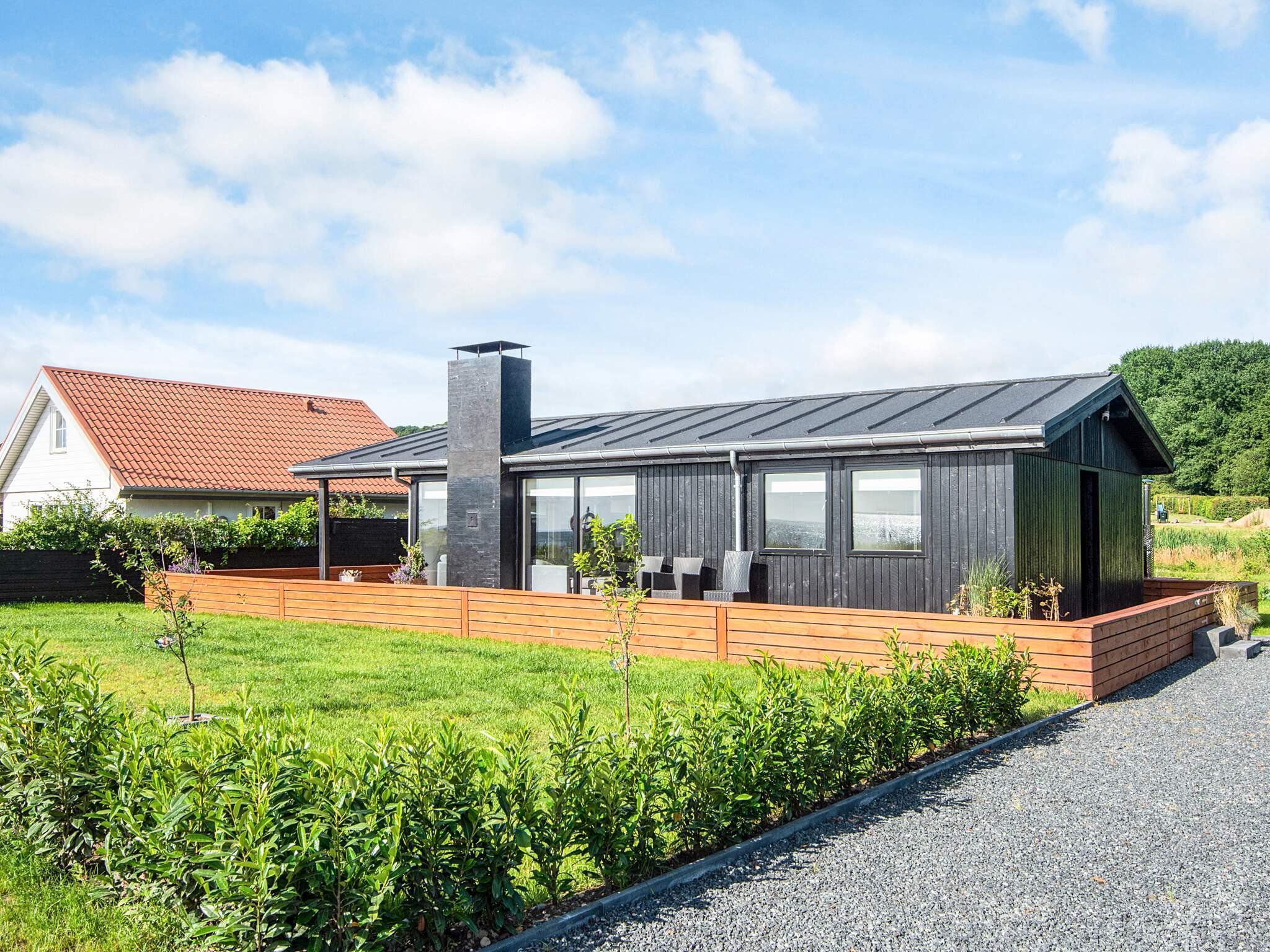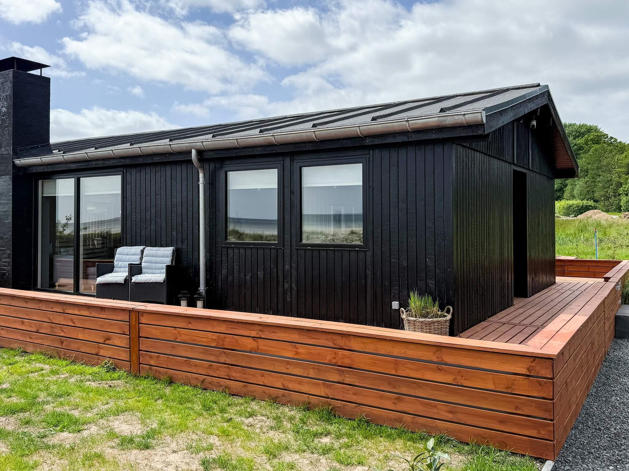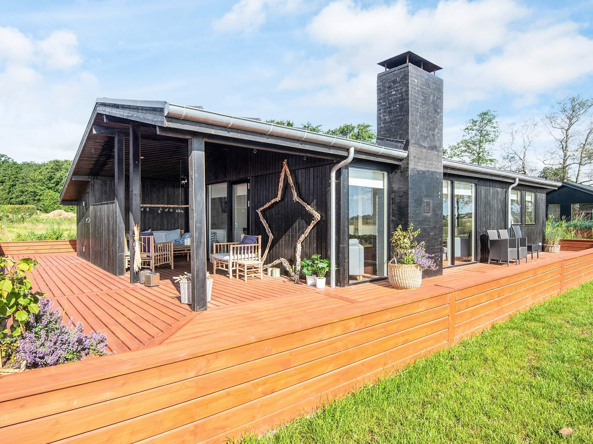 Sommerhus i første række med panoramaudsigt over Binderup Bugt. Huset er omgivet af terrasser, så I både kan nyde udsigten foran men også opholde jer på den lukkede terrasse helt ugenert bag huset og evt. tage en tur i det lækre vildmarksbad. Her er der desuden en fiskerenseplads. Huset er med energibestarende varmepumpe og moderne og praktisk indrettet. Huset ligger kun 250 meter fra en restaurant og en isbar, perfekt til at nyde lokale lækkerier under dit ophold.