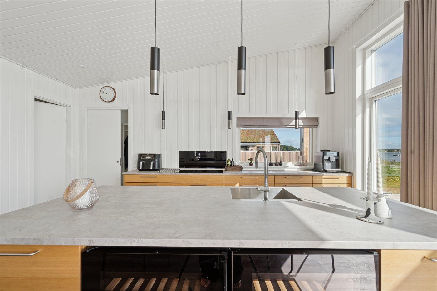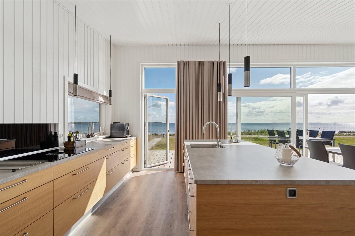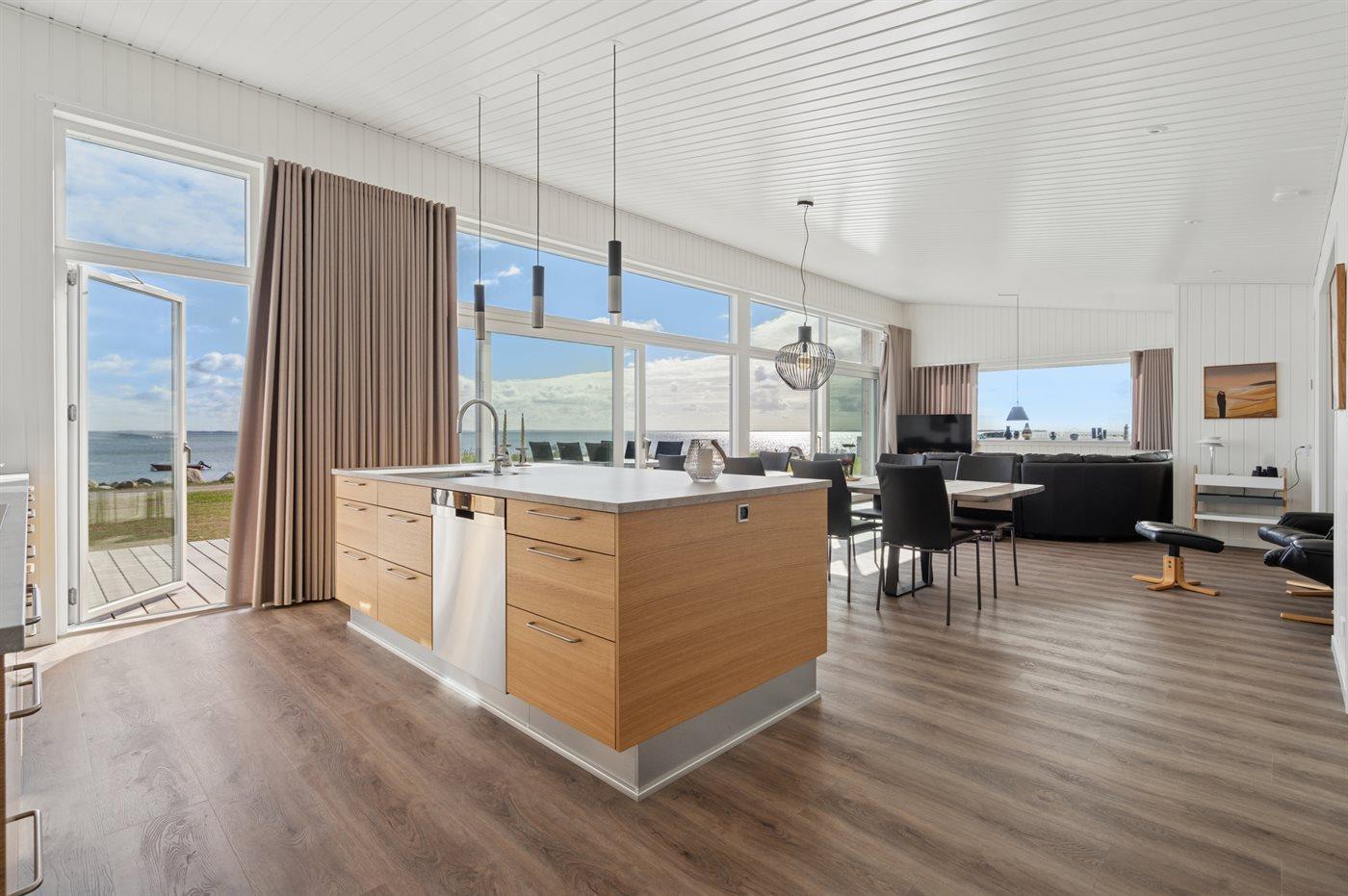 I det skønne sommerhusområde i Grønninghoved ligger dette helt unikke og dejlige sommerhus. Sommerhuset er beliggende i 1. række direkte til vandet og hermed perfekt placeret med en fantastisk panoramaudsigt over Lillebælt. Udsigten kan nydes fra alle vinkler i det store køkken-alrum, så uanset om I står i køkkenet og forbereder aftensmaden eller slapper af i lænestolen ved det brede vinduesparti, kan I følge livet på vandet og den rolige horisont.
