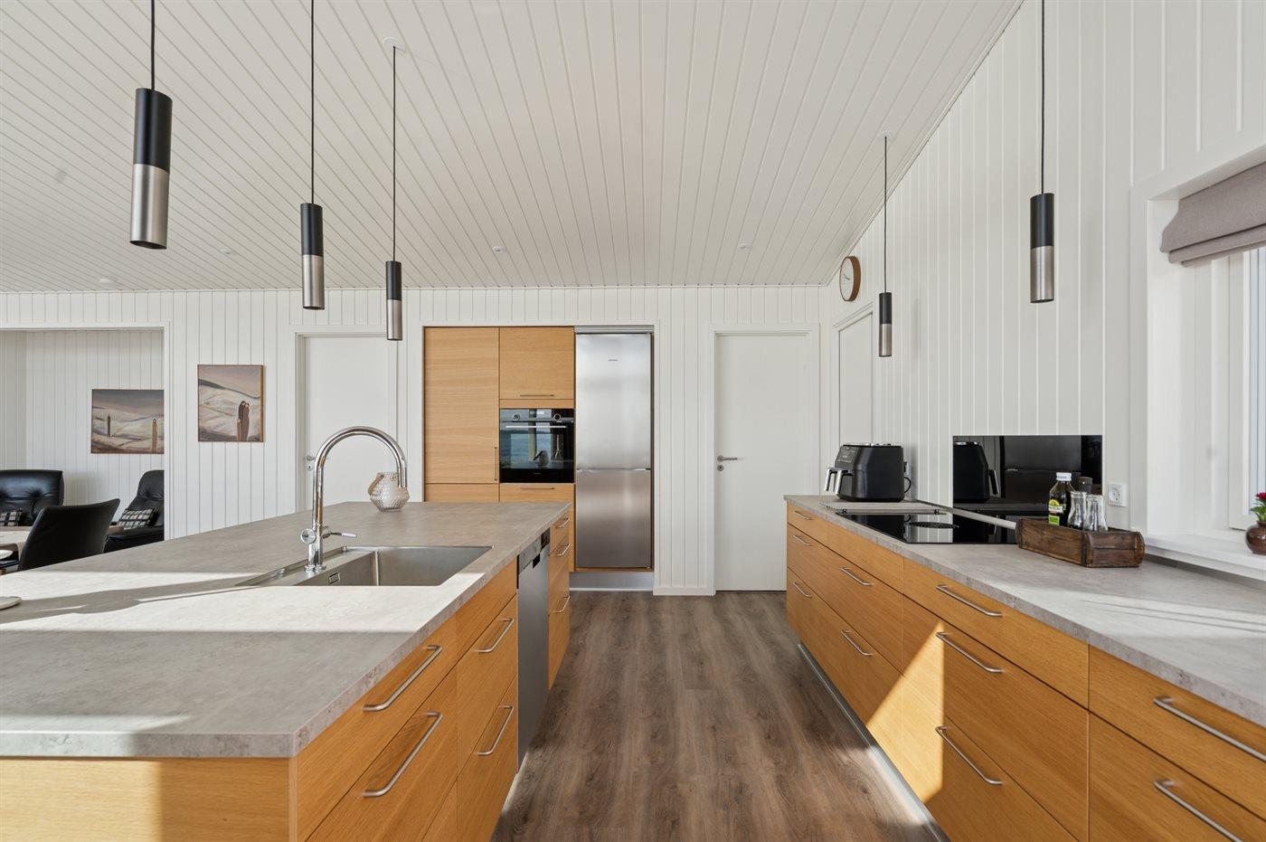 Køkkenet er udstyret med 1 køleskab. Der er 4 induktionskogeplader, varmluftovn samt opvaskemaskine.