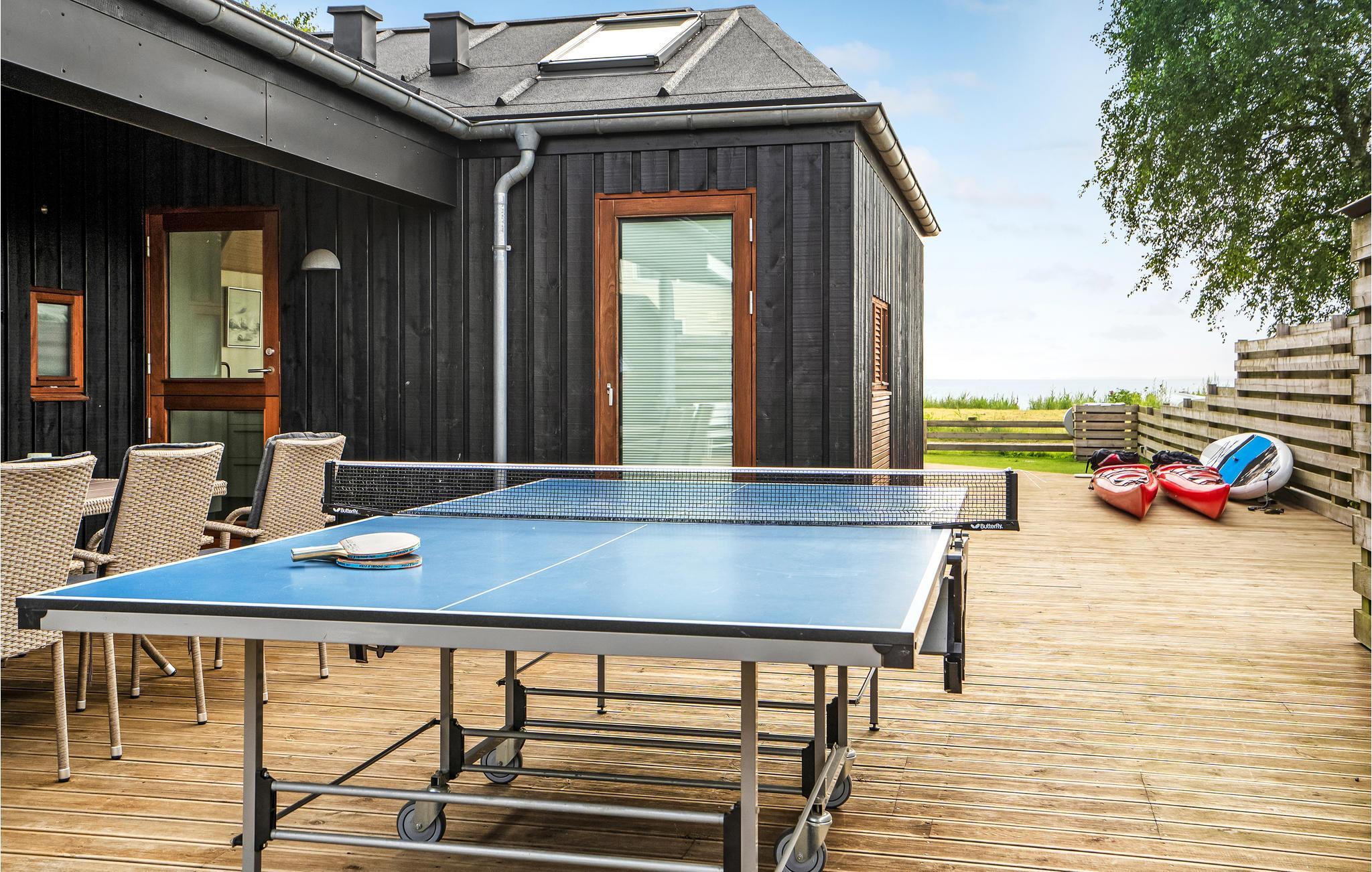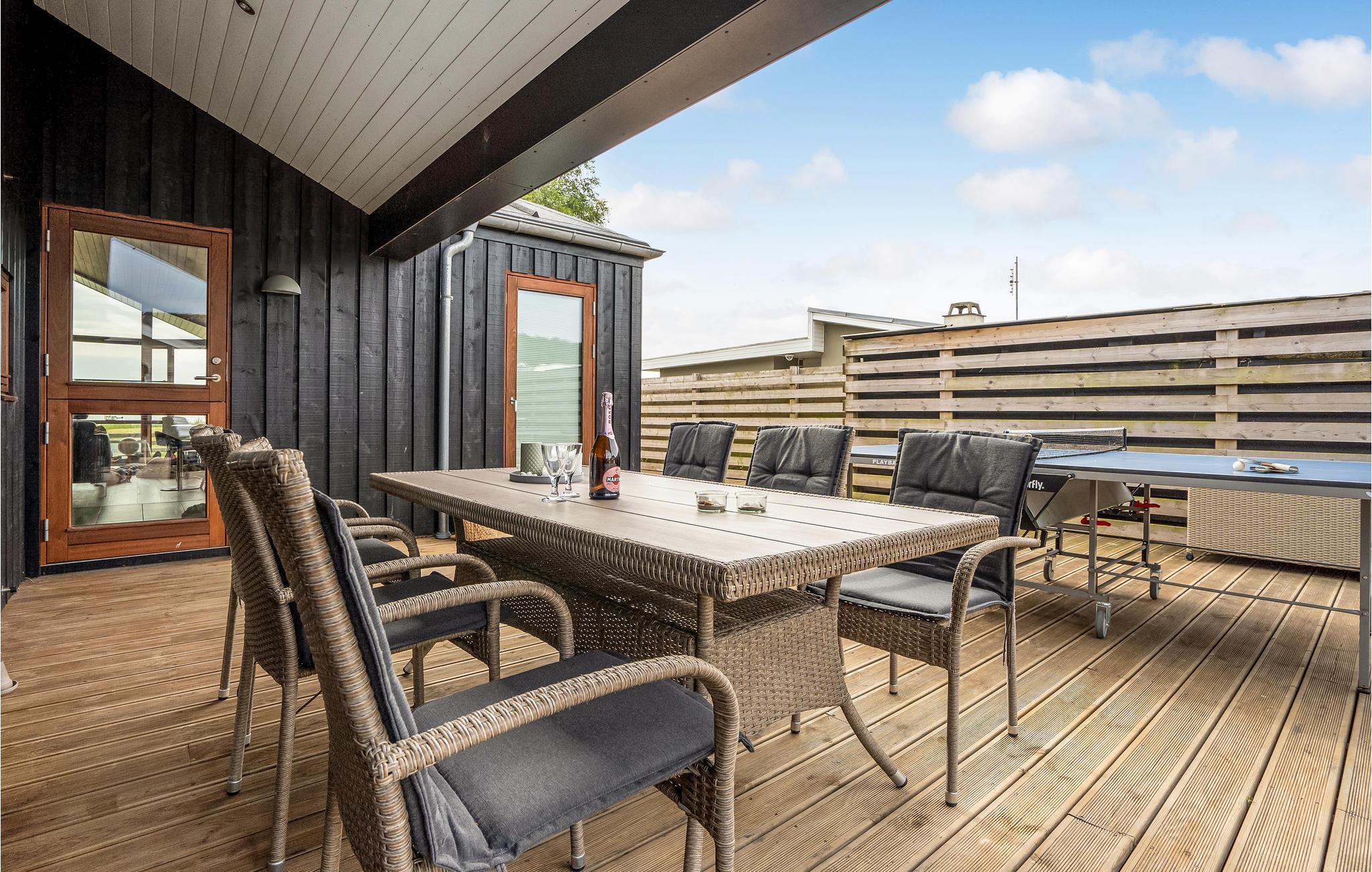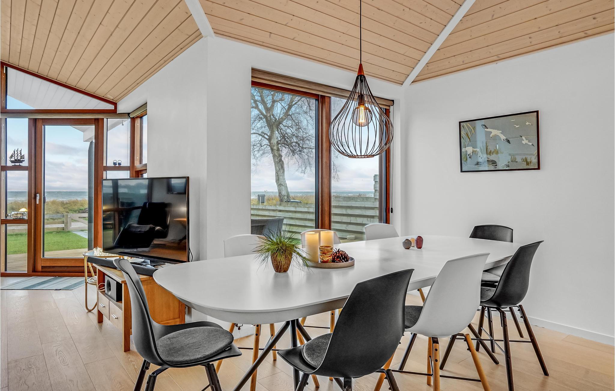 Velkommen til dette sommerhus af høj kvalitet med alle faciliteter til en vellykket ferie på østkysten af ??Danmark. Det lyse og moderne hus venter dig på en smuk græsplæne og med udsigt over Lillebælt. Hjertet i huset er den smukke stue med store vinduer og masser af naturligt lys. Slap af her i sofaen med en knitrende ild i pejsen og tal om dagens begivenheder. Fra spisepladsen har du også en smuk udsigt over omgivelserne. Køkkenet af høj kvalitet er husets mødested, hvor du kan tale med de andre, mens du laver mad. Et ventilationssystem sikrer behagelig luft i huset.