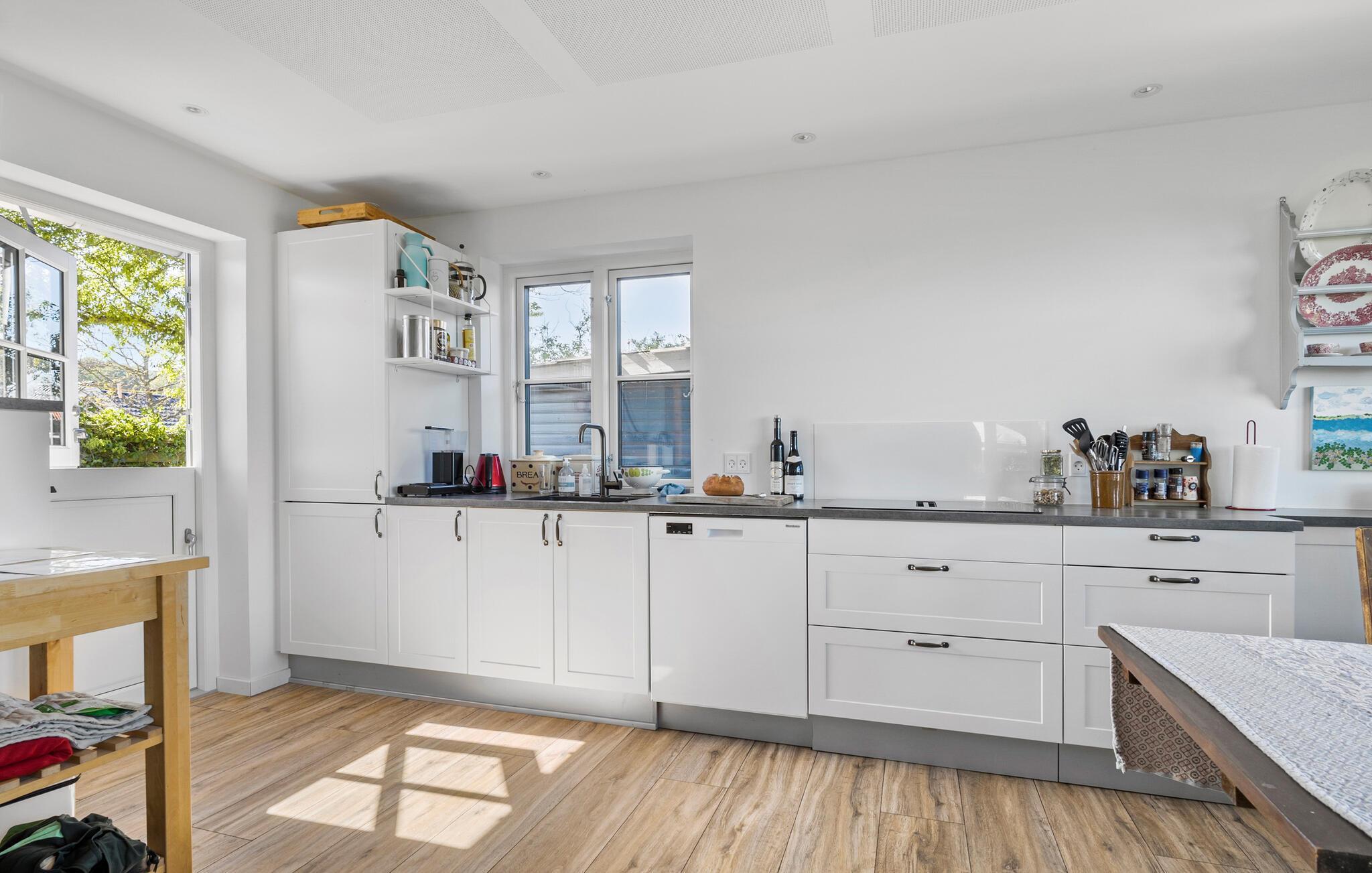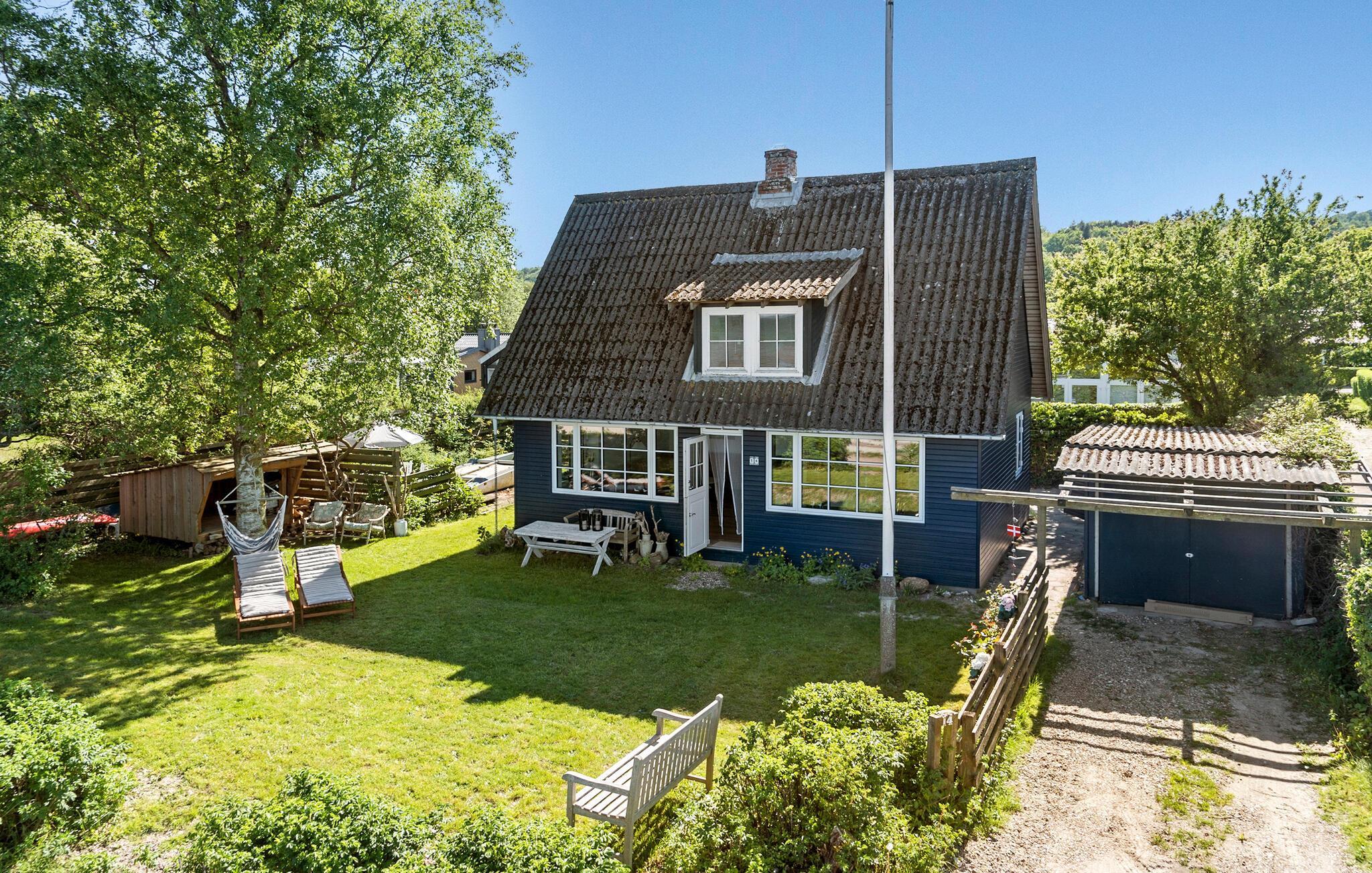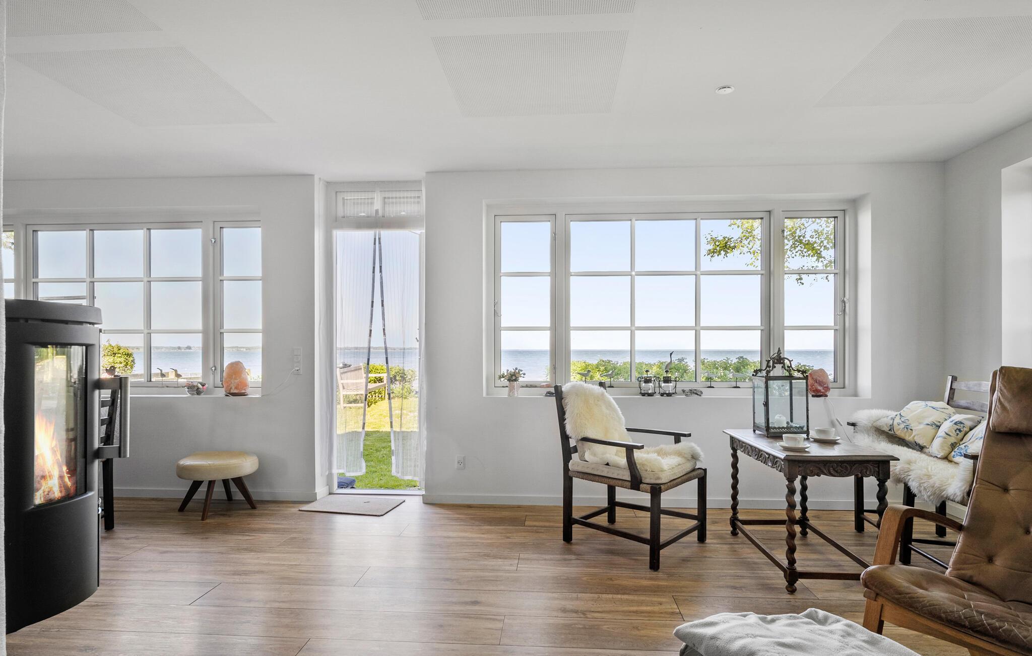 Dette sommerhus giver jer fantastiske bademuligheder lige foran huset. Dernæst kan I se frem til et skønt hus med store vinduespartier og en dejlig atmosfære. Opholdsrummet er i åben forbindelse med køkkenet og giver jer gode betingelser for familietid i løbet af ferien. Her kan I fylde dagene med god tid til måltiderne, brætspil og rolige stunder uden program. Det hyggelige sofahjørne er et godt sted at nyde udsigten over haven, mens børnene leger og har det sjovt. I kan tænde op i brændeovnen på en kølig aften. Husets grønne have giver jer en vidunderlig udsigt over havet og bliver jeres foretrukne opholdssted på de solrige dage.