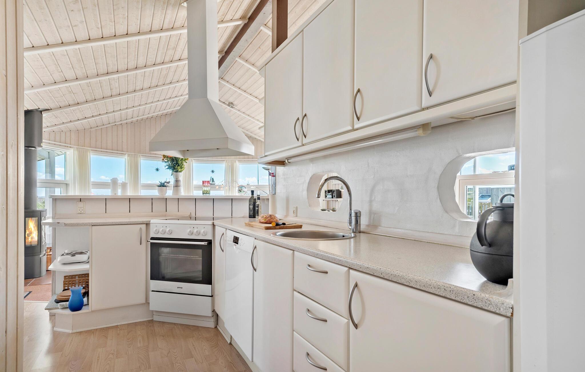 Der er ikke langt til skønne Grønninghoved Strand fra dette komfortable sommerhus. Her kan I nyde dagens rolige stunder i den rummelige opholdsstue med store vinduer og give jer god tid til fælles madlavningsprojekter i køkkenet. Dæk op til dagens måltider ved spisebordet og hyg jer senere med brætspil, når aftenen falder på. Fra sofaen kan I nyde over haven og længere ude det skinnende blå vand. Børnene vil sikkert kaste sig over gyngerne og hygge sig med løb og leg i haven. Rund dagene af med en god film i fjernsynet og ild i brændeovnen, hvis det er blevet lidt køligt. Skal I gøre noget godt for jer selv efter dagens program, er det herligt med sauna og spabad.