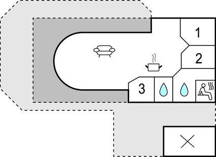 Badeværelse (nr. 1) - WC. Varmt og koldt vand. Bruser