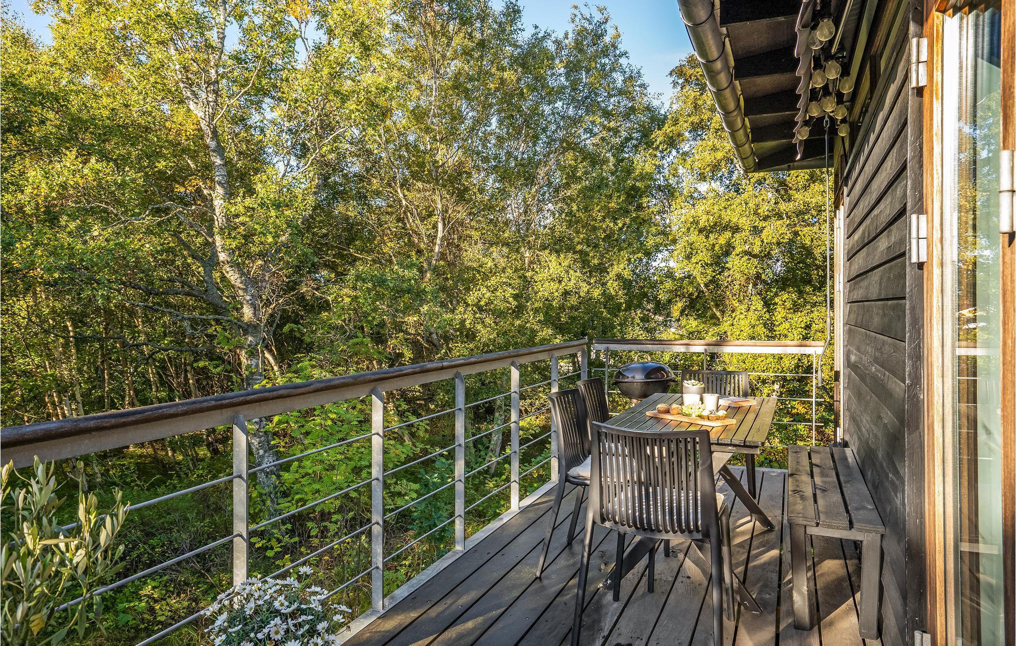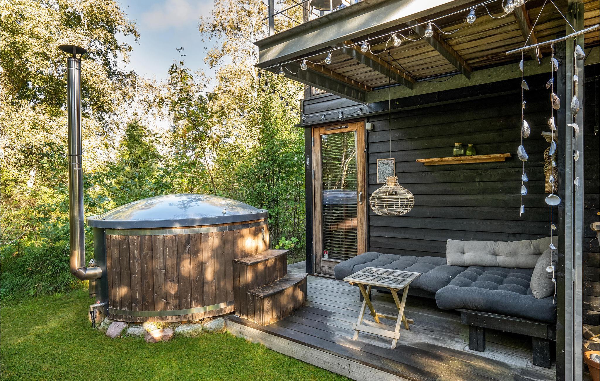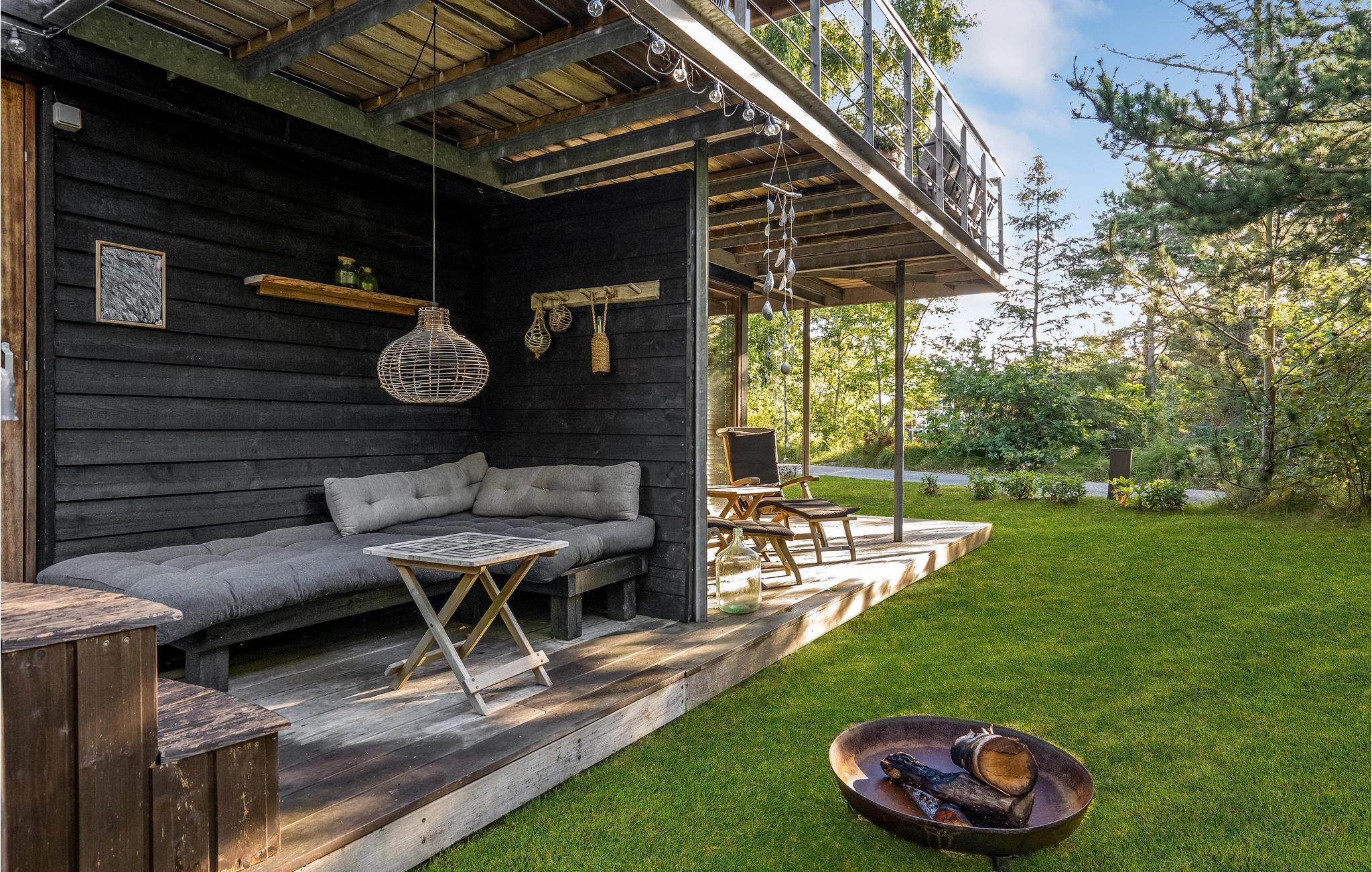 Dette unikke feriehus fortryller allerede ved første øjekast. Husets to etager byder på en vidunderlig kombination af skønne terrasser, spabad, brændeovn og moderne møbler af høj kvalitet. Udsigten til den grønne, ugenerte grund og nærheden til stranden fuldender ferieoplevelsen her. Afslappede feriedage kan tilbringes med at sole sig, læse og spise lækker mad på terrasserne, og nyde en drink i udespaet om aftenen.