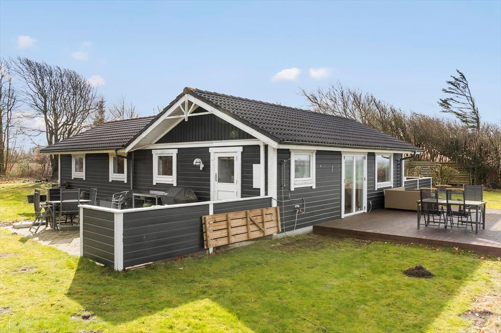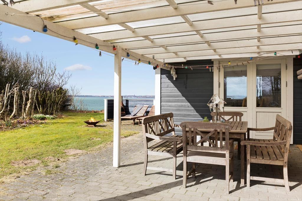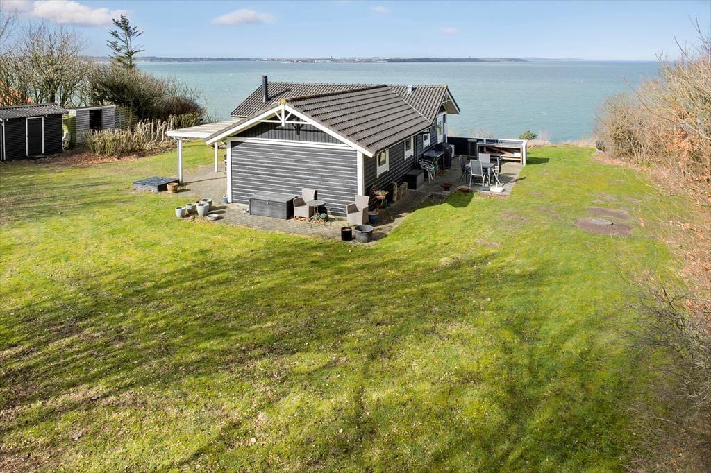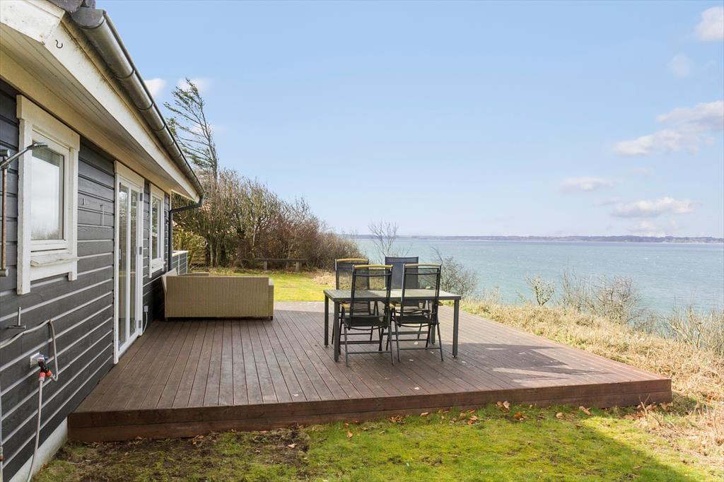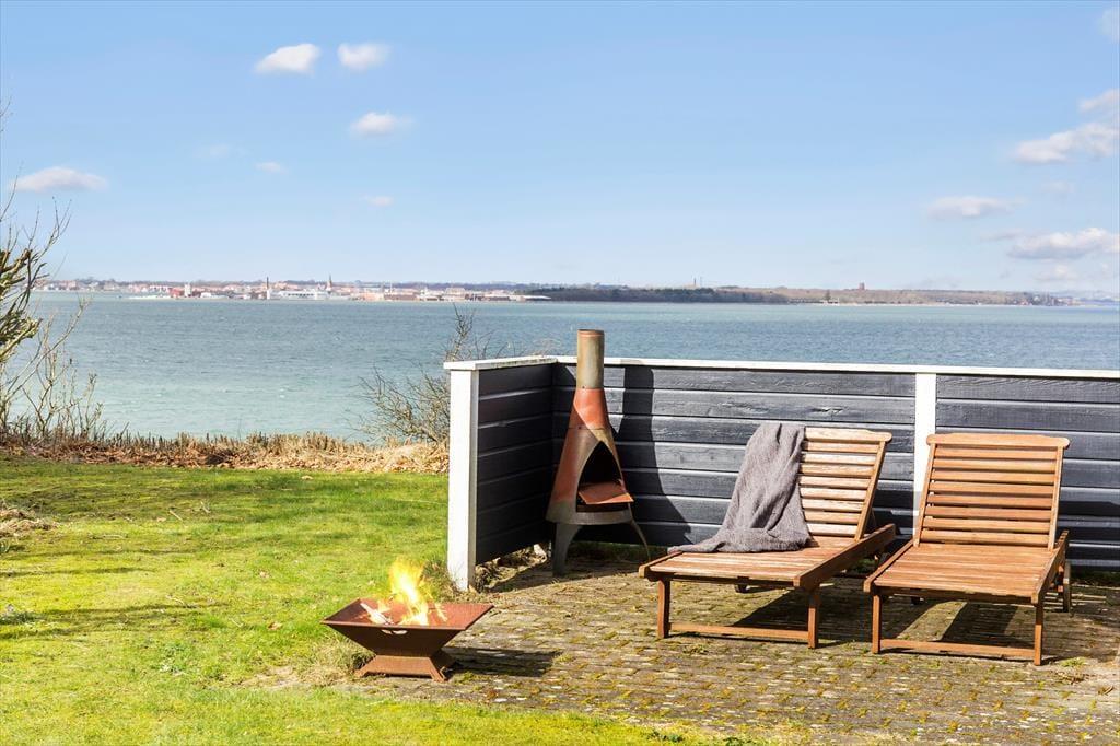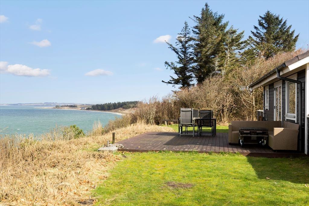 Grunden er med sine 2946 m2 dejligt stor, og den høje beliggenhed sørger for, at I har fri udsigt mod Mors og langt ud over fjorden. I kan se vandet fra flere af husets skønne terrasser, og med delvist afskærmede områder og et overdækket areal er det nemt at finde den helt rette opholdsplads dagen lang. Til de yngste feriegæster er der en sandkasse, og udebruseren gør det nemt at skylle sig efter en løbetur eller en dukkert i fjorden.