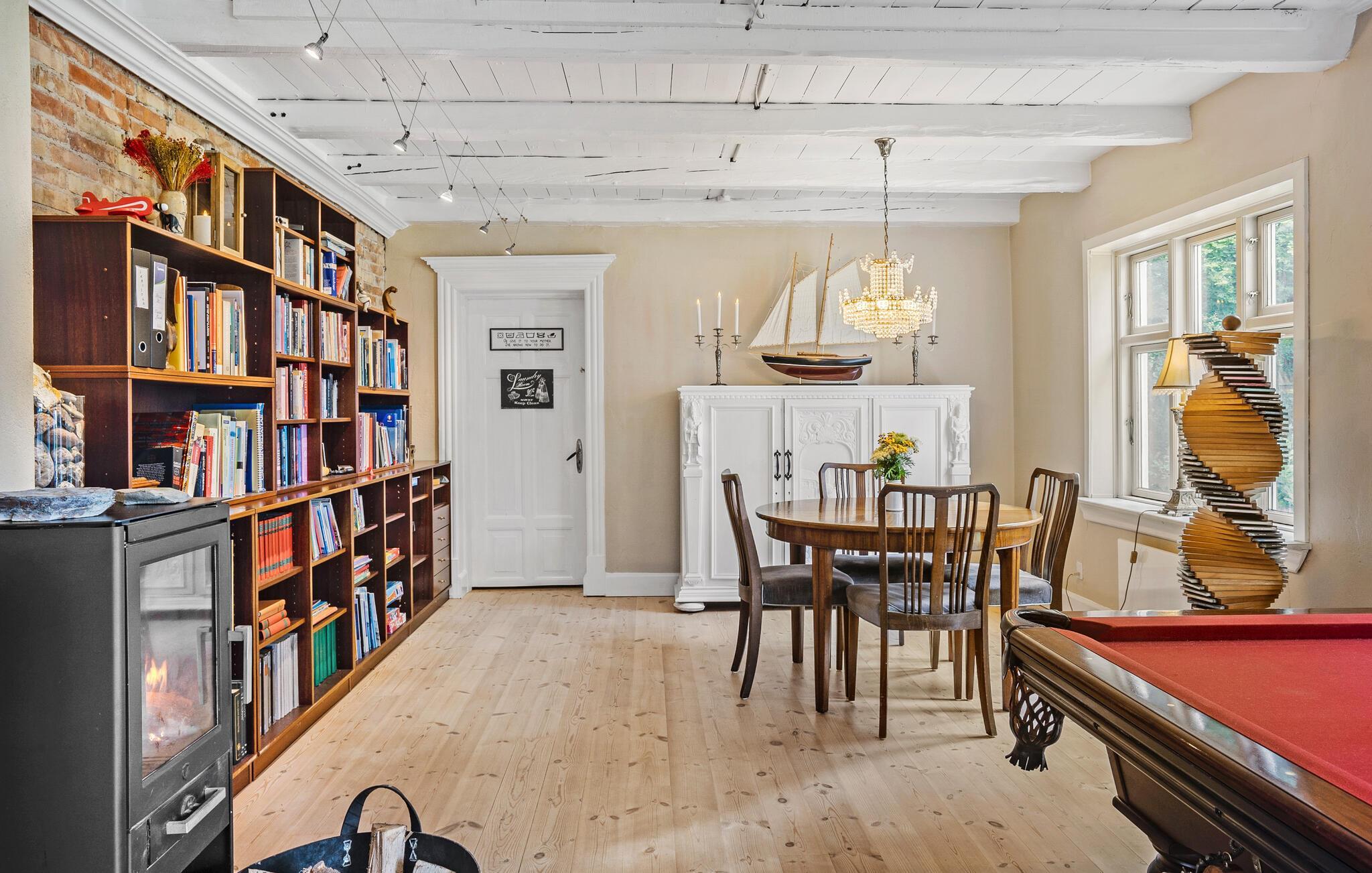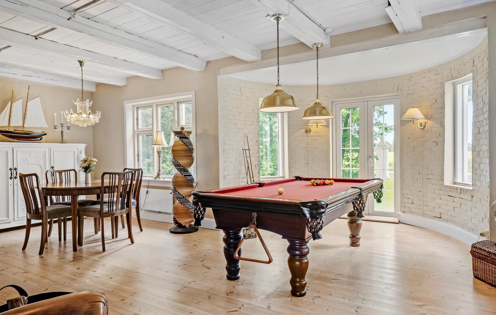 Velkommen til dette elegante hjem, som byder på høj komfort. Huset er fordelt på to etager, og i den skønne stue er der både læsestof og et poolbord. Tilbring hyggelige aftener i øreklapstolen, ved brændeovnen eller over et spil billard. Nyd udsigten til landskabet og den skønne atmosfære i haven. Her kan I sætte jer til rette jer under halvtaget eller i fuld solskin på terrassen. Nyd små alenestunder i den store parklignende have med rhododendronbuske, kæmpetræer, en skovsø, bærbuske og frugttræer. Jeres hunde kan snuse sig gennem haven og gå med jer direkte ud i den lille skov.