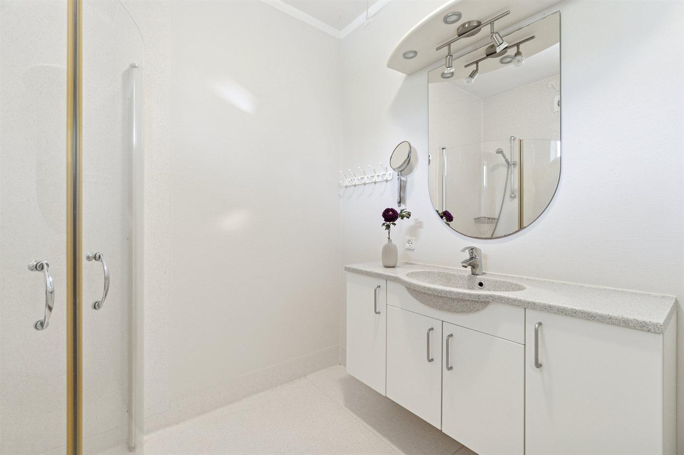 Der er 1 badeværelse med bruseniche og 1 toilet.. Der er gulvvarme på 1 badeværelse.
