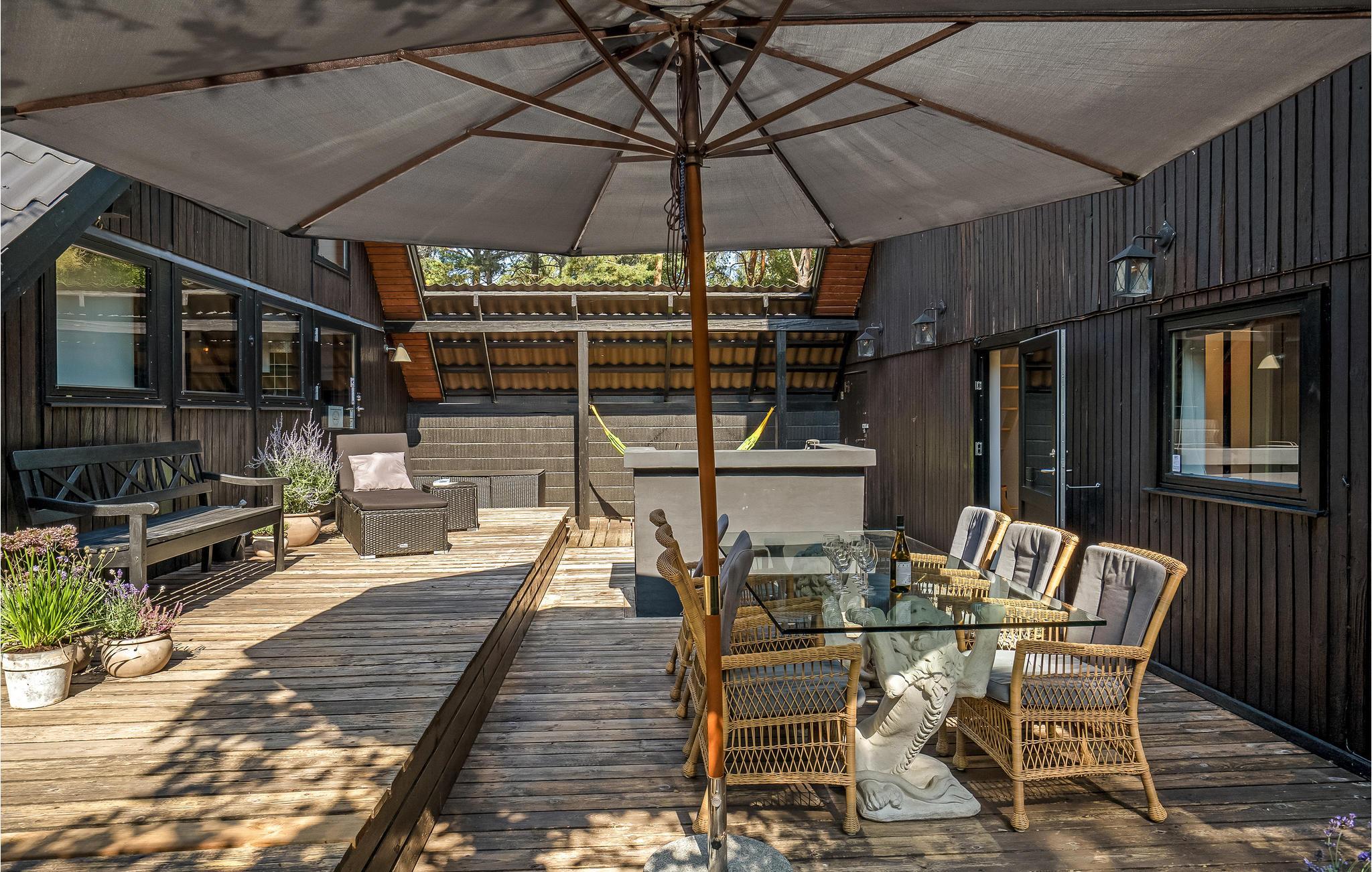 Huset er forbundet med anneks via skøn sydvendt atriumgård/træterrasse, her vil I kunne tilbringe mange timer med hyggelige grillaftener.