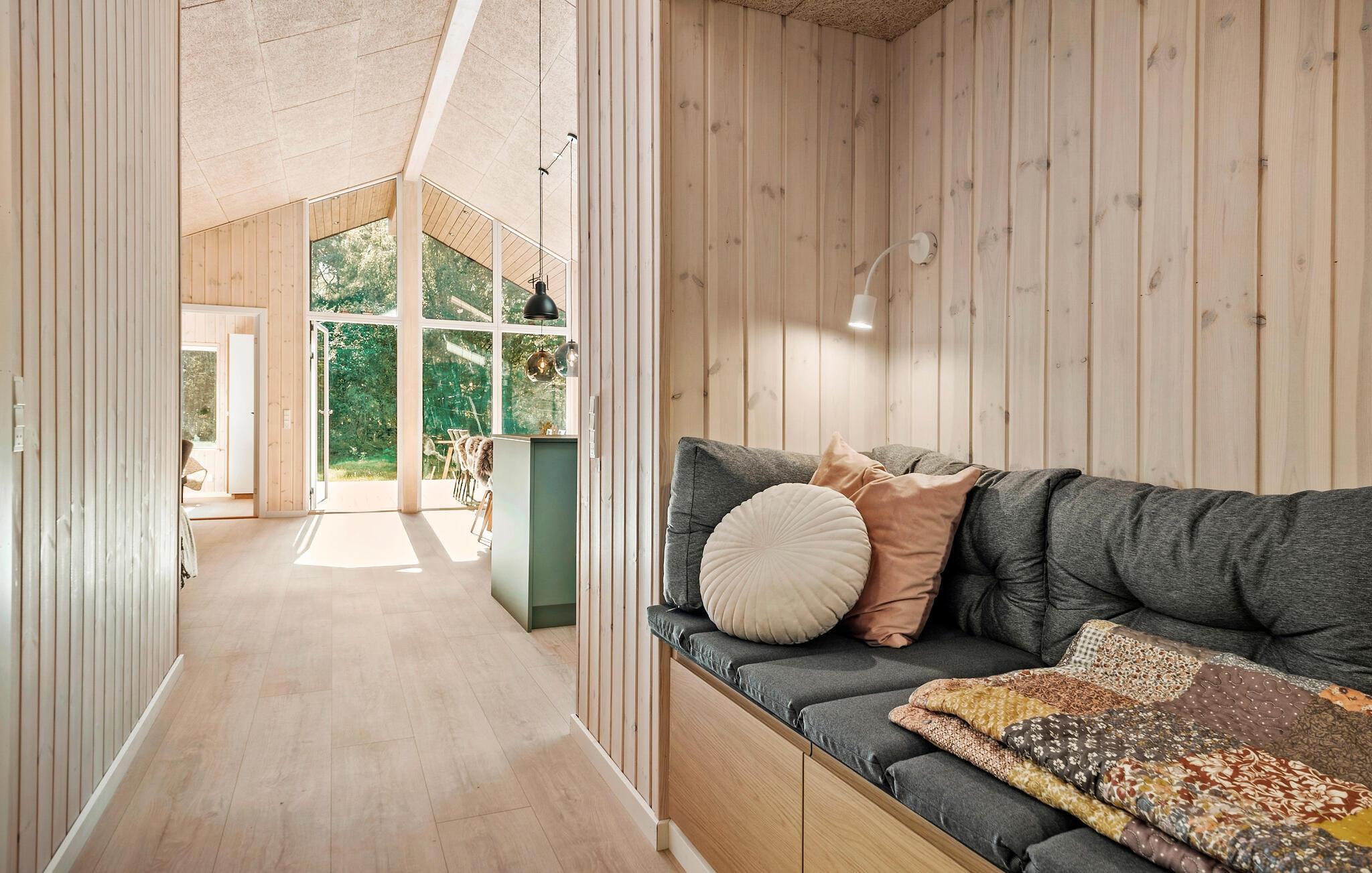 Stilfuldt feriehus med sauna, spabad og stor have i Gudmindrup Strand, perfekt til afslapning og samvær.