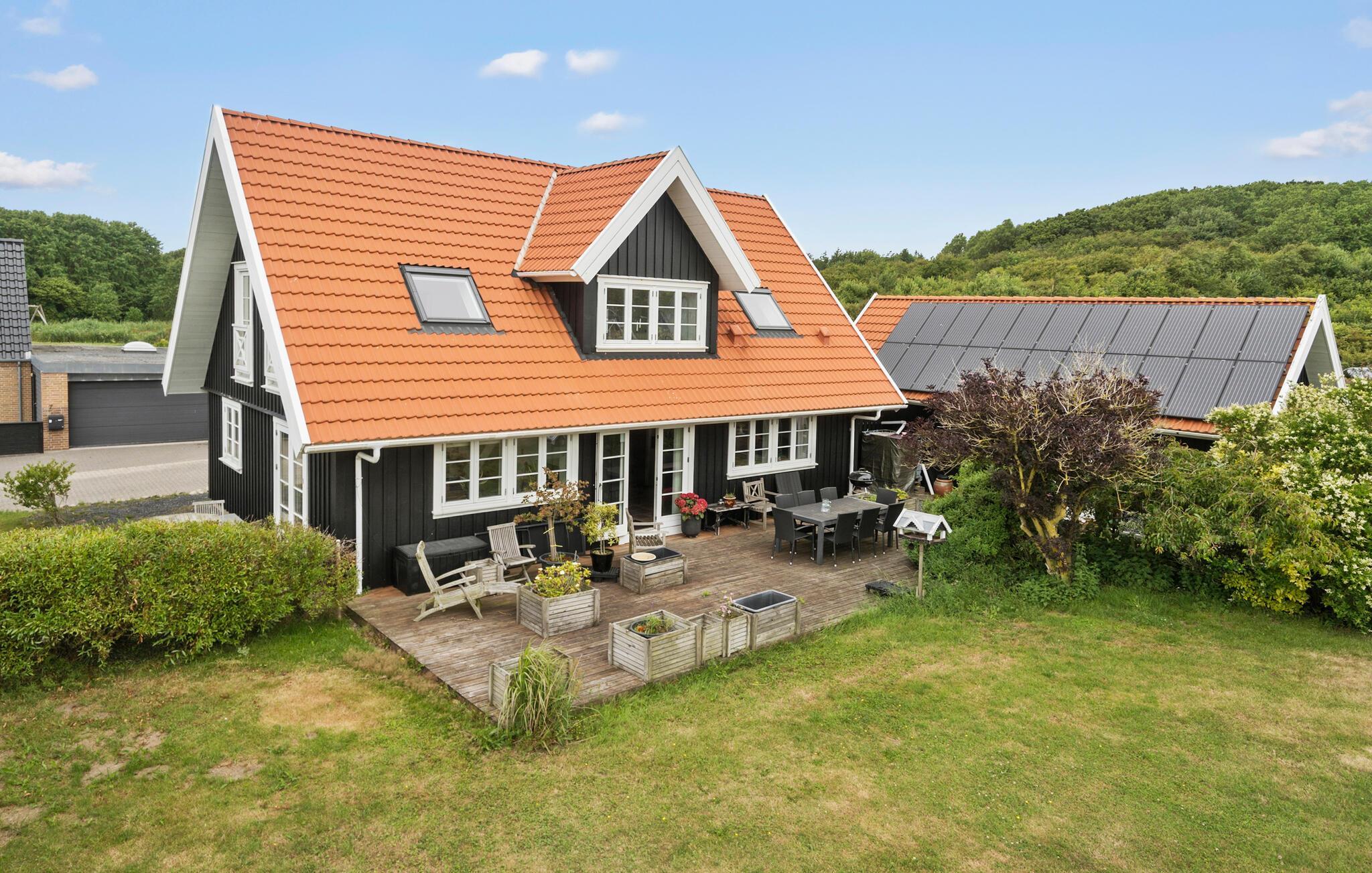 Velkommen til et hyggeligt og indbydende hus, som bliver rammen om et skønt ophold med tid til fred, ro og familievenlige aktiviteter. Der er en dejlig udsigt over de grønne omgivelser og fjordens blå vand, som I kan nyde fra haven. I det moderne køkken kan I gøre dagens menu klar, inden I dækker op ved spisebordet.