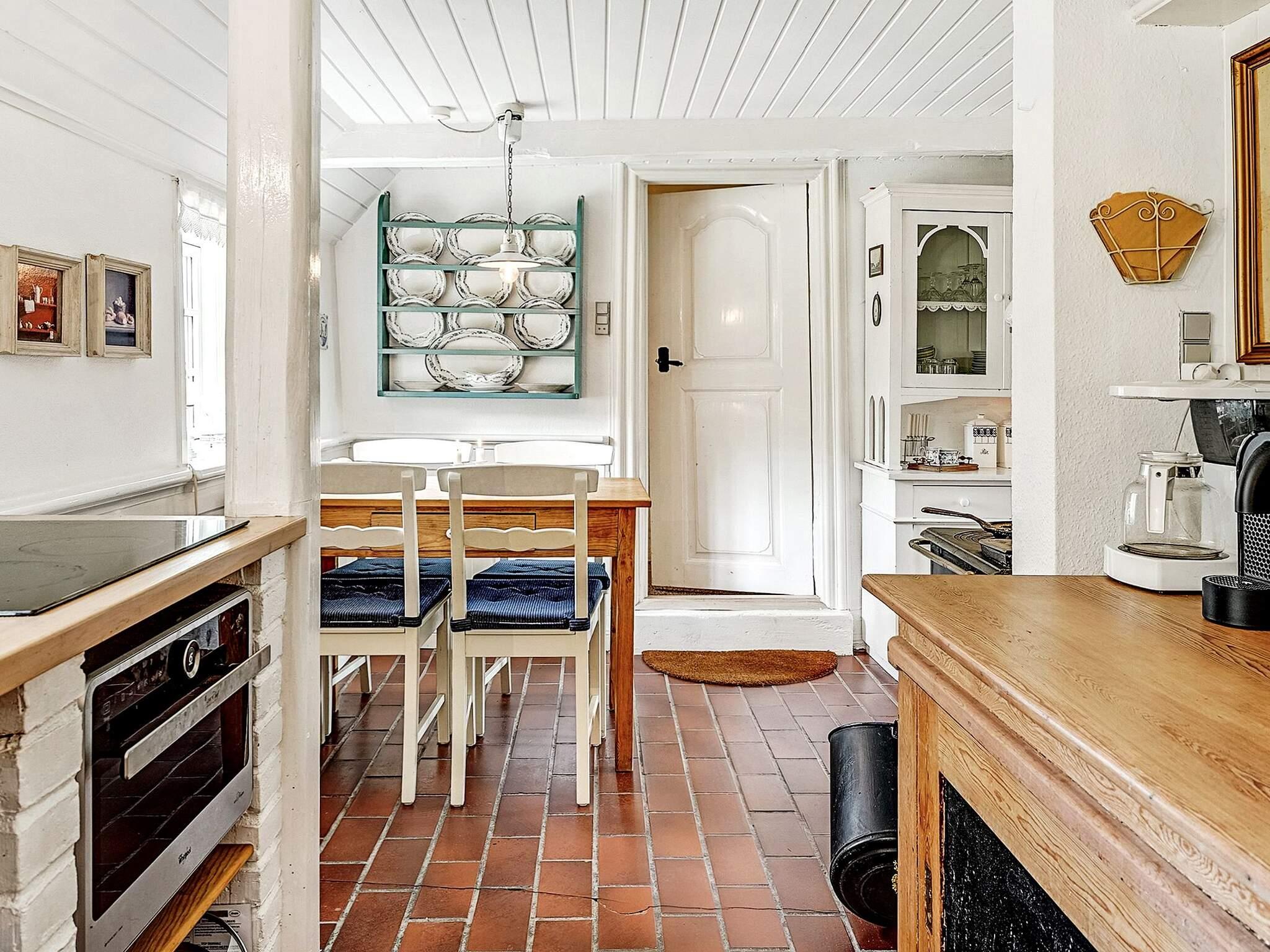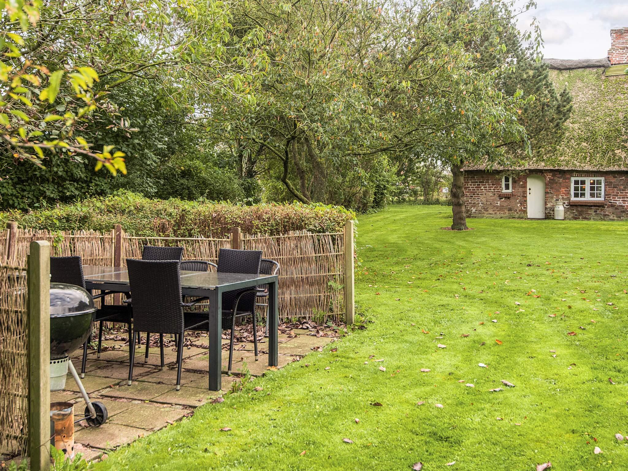 Udenfor er en dejlig have med frugttræer og en terrasse, hvor der er grill og havemøbler. Huset ligger fuldstændig ugenert for enden af markvej ud til åbne marker. Den antikke kakkelovn, må ikke benyttes. Udlejes ikke til ungdomsgrupper.