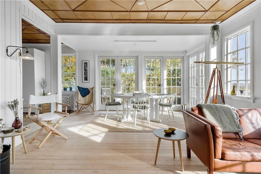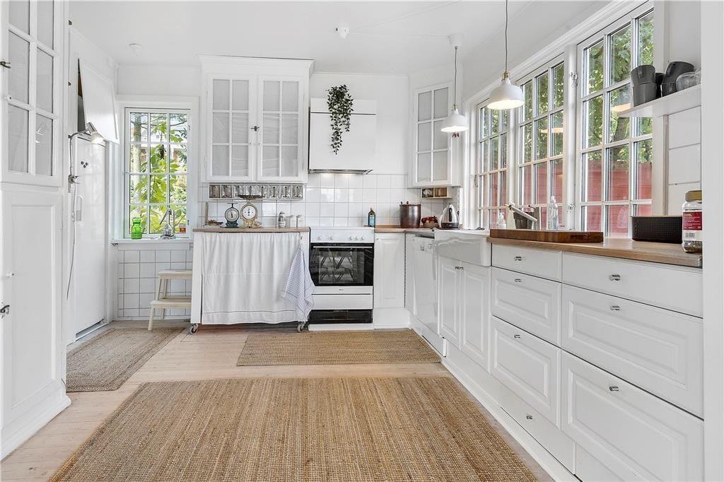 Huset ligger højt i landskabet på en fredelig vej og emmer af charme med sin rødmalede træfacade, hvide sprossevinduer, gavlkviste og træornamentik. Her mærker man med det samme, at der er tale om et hus med en helt særlig sjæl. Indenfor er der utroligt lyst, og udsigten gennem de mange vinduespartier er betagende. Det mærker man særligt i den smukke opholdsstue med brændeovn, hvorfra der også er direkte udgang til solrig terrasse. Køkkenet lever med sin landlige stil fuldt op til den idylliske stemning, og overalt mærker man, at renoveringen er foretaget med respekt for den oprindelige stil. På førstesalen er der hyggelige skråvægge, og her kan I se frem til en udsigt, der er om muligt endnu mere imponerende.