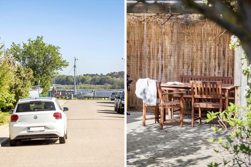 Når sommersolen skinner, er det oplagt at flytte samværet ud på husets hyggelige terrasser. Fra stuen er der direkte udgang til en hævet terrasse, og herfra kommer du via en trappe til terrassemiljøet bag huset. Der er en næsten sydlandsk stemning hernede, hvor blomstrende buske og træer sætter udendørsmiljøet smukt i scene. Her er hyggelige kroge, hvor du kan slå dig ned med en kop kaffe og en god roman og bare nyde solen og de fredelige omgivelser. På den overdækkede del af terrassen kan du dække op til hyggelige middage, når aftenen falder på – og der er også grill, hvis du holder af at lave mad over åben ild.