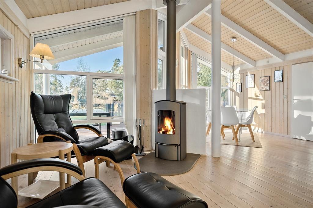 Fantastisk godt indrettet hus, hvor man virkelig føler sjæl og charme. Flot køkken med spiseplads, hvor man føler, at man sidder midt i naturen pga. de store vinduer. Dejlig lys stue, med komfortable møbler; 2+3 sofaer og 2 lækre lænestole. 3 gode værelser; 1 soveværelse med dobbeltseng, 1 med 1½ seng samt 1 med 2 enkeltsenge. Det hyggelige badeværelse rummer en dejlig spa og en sauna - nærmest en helt lille wellnessafdeling i huset.