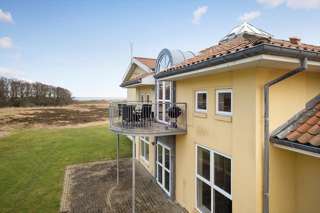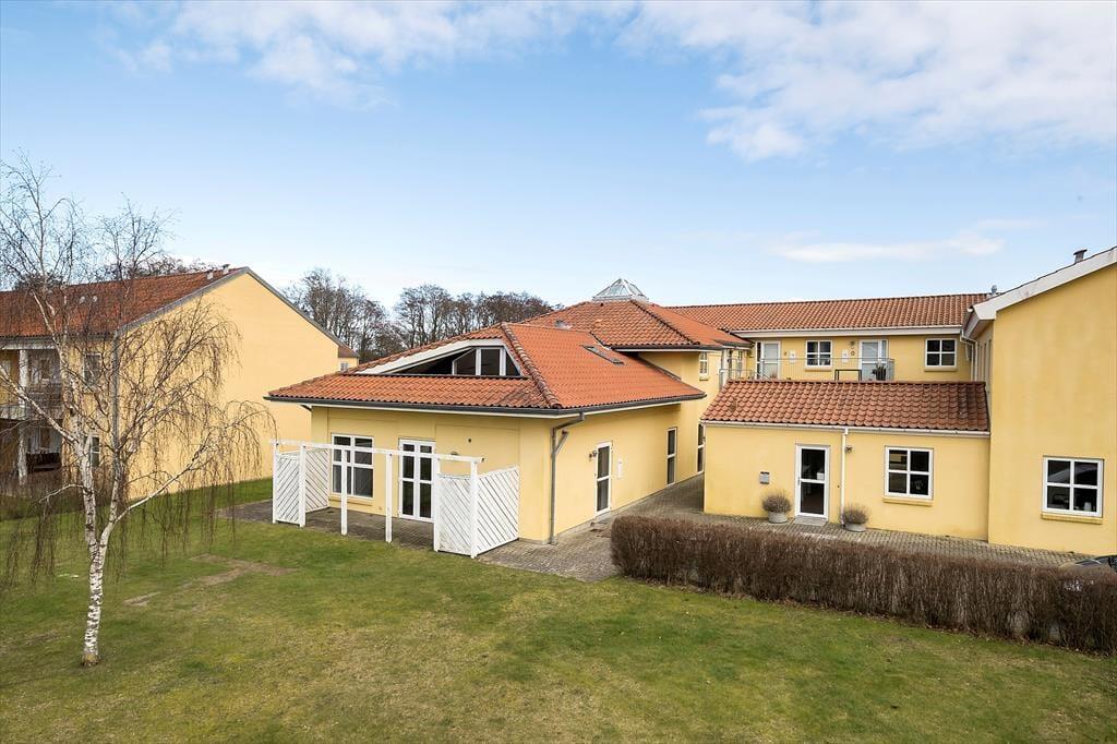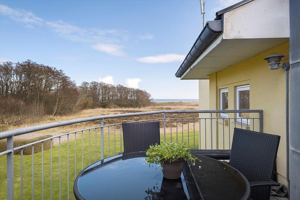 Fra lejlighedens altan har I en flot udsigt til både skov og hav, så omgivelserne kunne ikke være meget skønnere, når I slapper af i havemøblerne eller griller om aftenen. Omkring ejendommen breder et grønt fællesareal sig, og her er der legeplads til børnene og sti direkte ned til stranden.