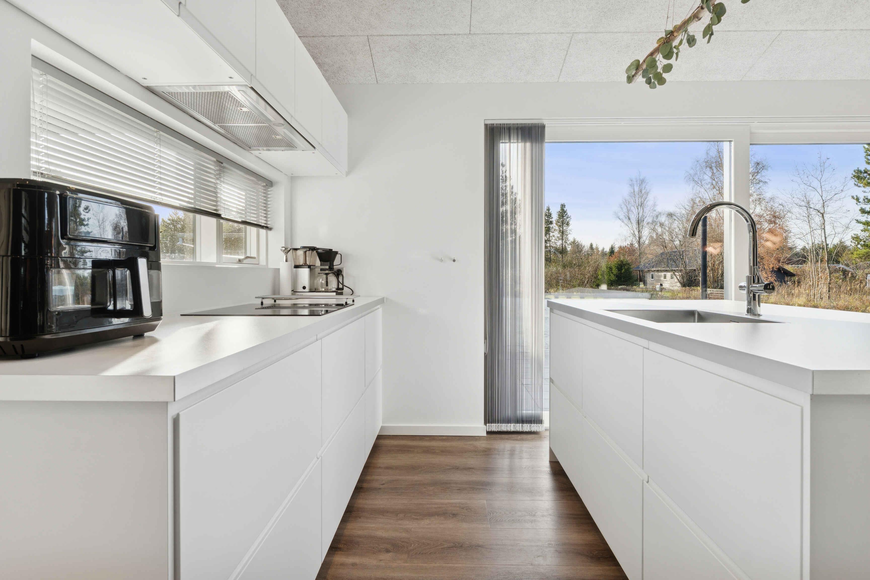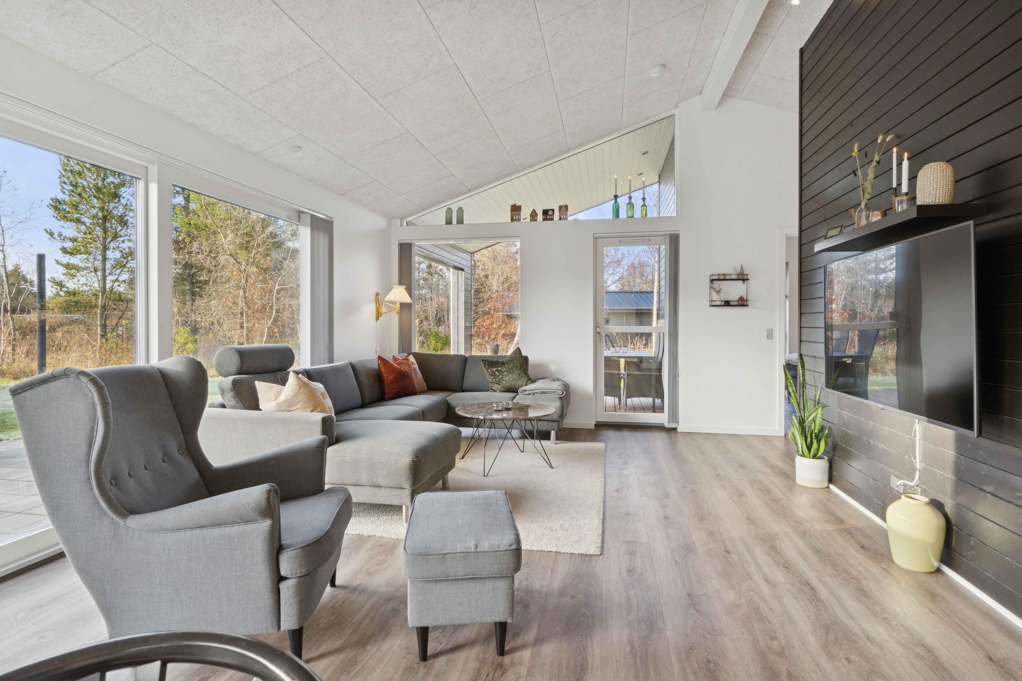 Dejligt lyst sommerhus, varmepumpe, brændeovn, internet, ligger på ugenert grund, stor grund med plads til leg, flere terrasser, indendørs spa, smart tv
