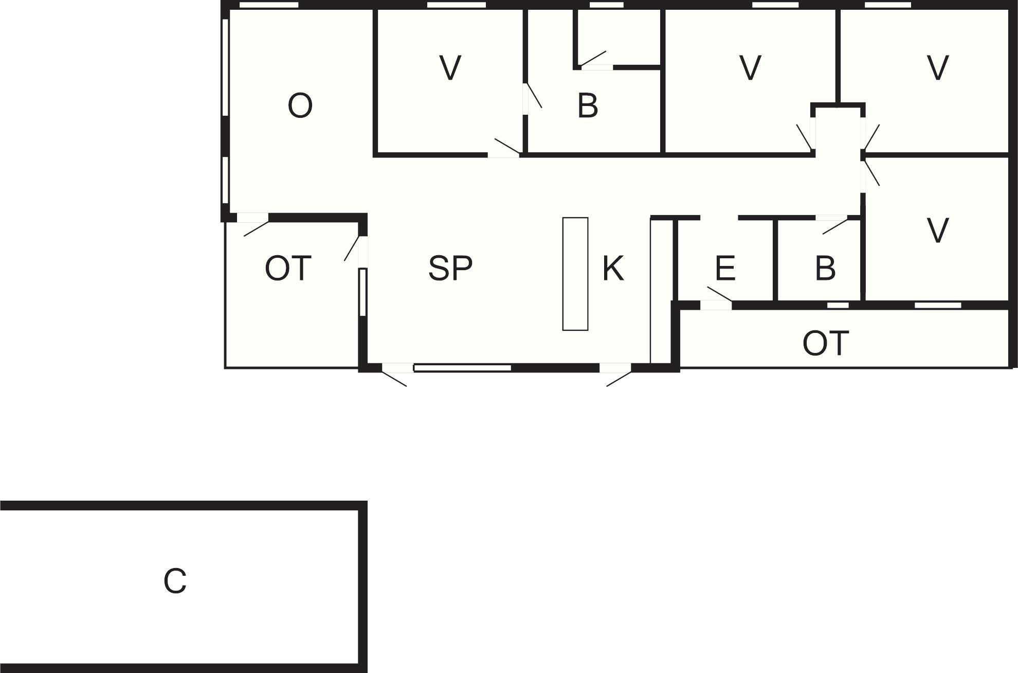 4 Soveværelser: (1DS)+(1DS)+(1DS)+(2S)