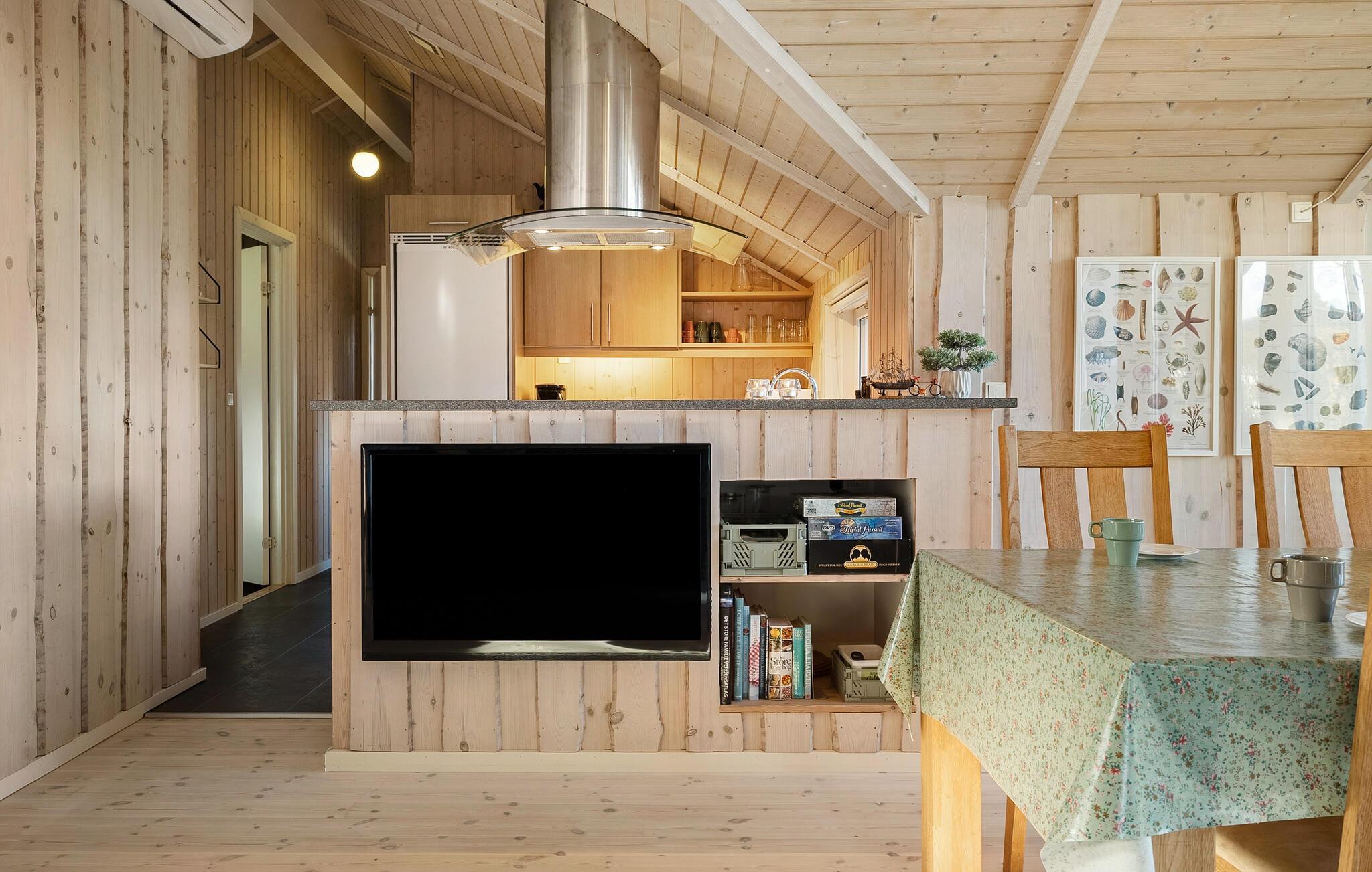 Nyd jeres tid ude i jeres roligt beliggende feriehus, som er noget særligt med sine naturlige omgivelser og hjemlige atmosfære. Gør morgenmaden klar i det praktiske køkken og sæt jer sammen ved det indbydende spisebord for at begynde dagene i fred og planlægge jeres udflugter. I den lyse opholdsstue inviterer den store vinduesfront til at kigge ud i haven. Læn jer tilbage på sofaen og lad den afslappede atmosfære sænke sig. jeres eget lille wellnessområde med sauna og spabad sikrer total afslapning om aftenen.