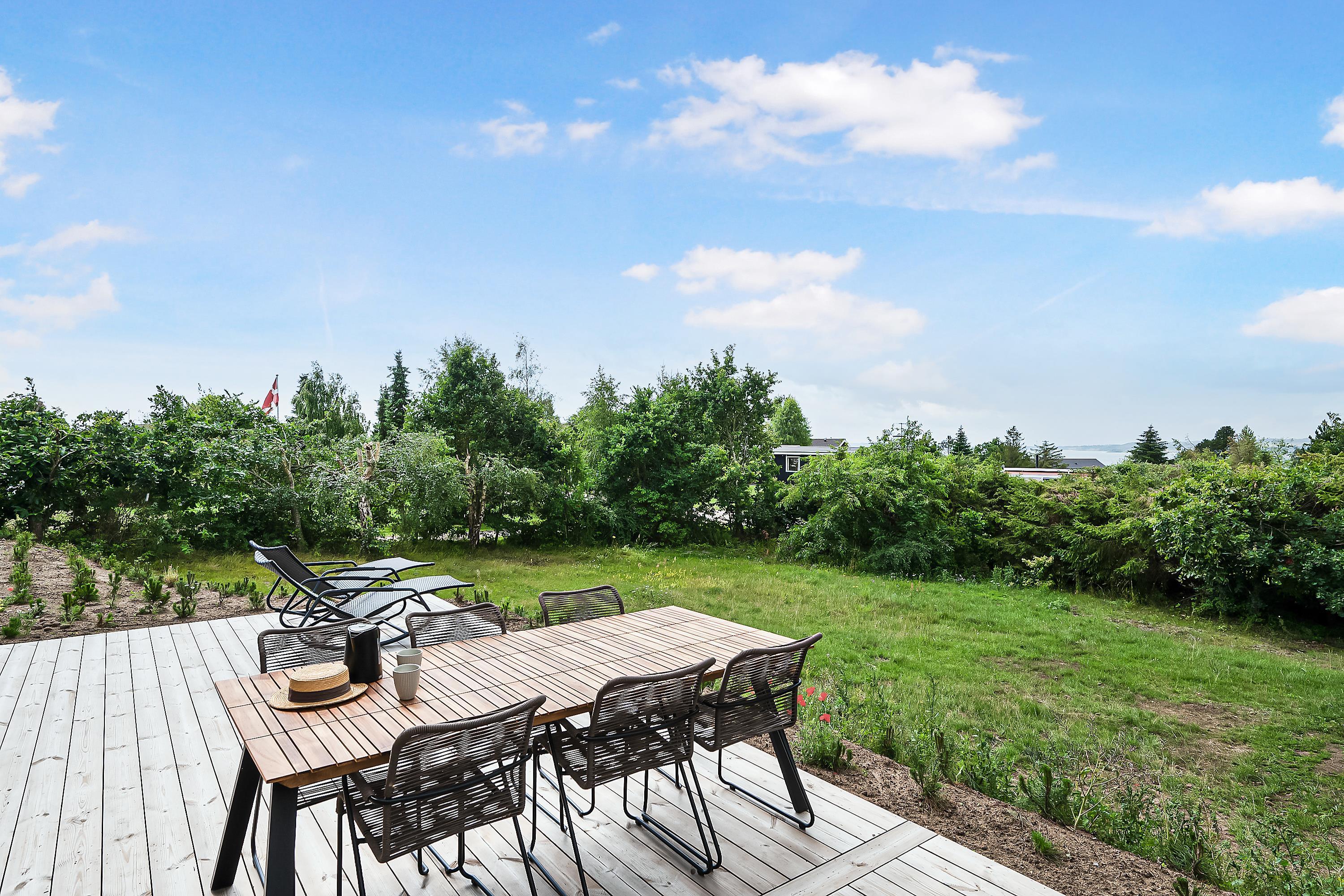 Flot nyopført sommerhus ved Handrup Strand med udsigt over Mols Bjerge og tæt på børnevenlig strand og Ebeltoft.