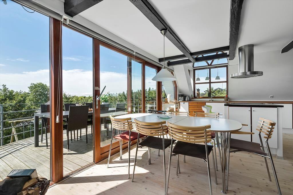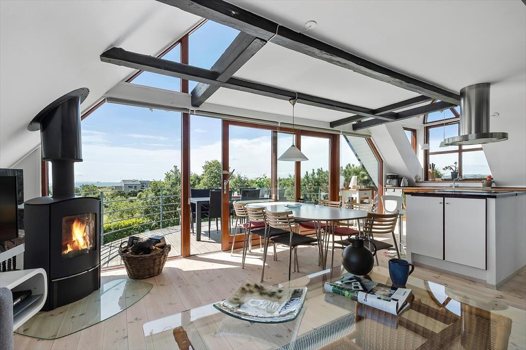 Her på Hejrevej 10 venter en klassisk, hyggelig ferieoase – med masser af lys, luft og plads til nærvær. Det er en flot udsigt som kan nydes til maden eller bare når du sidder i stuen og kikker ud. Det charmerende feriehus er indrettet med sans for det enkle og hjemlige, og her kan du roligt trække stikket og bare være. I stuen skaber brændeovnen den perfekte stemning på kølige aftener, mens det store vinduesparti lukker naturen helt ind. Det åbne køkken gør det nemt at være sammen – også når der kokkereres, og ferien smager bare lidt bedre, når man selv har lavet maden. Med fire gode soveværelser hvor det ene er i annexet og et lyst badeværelse samt gæstetoilet, er her rigeligt med plads til både familieferie og par-retreats.