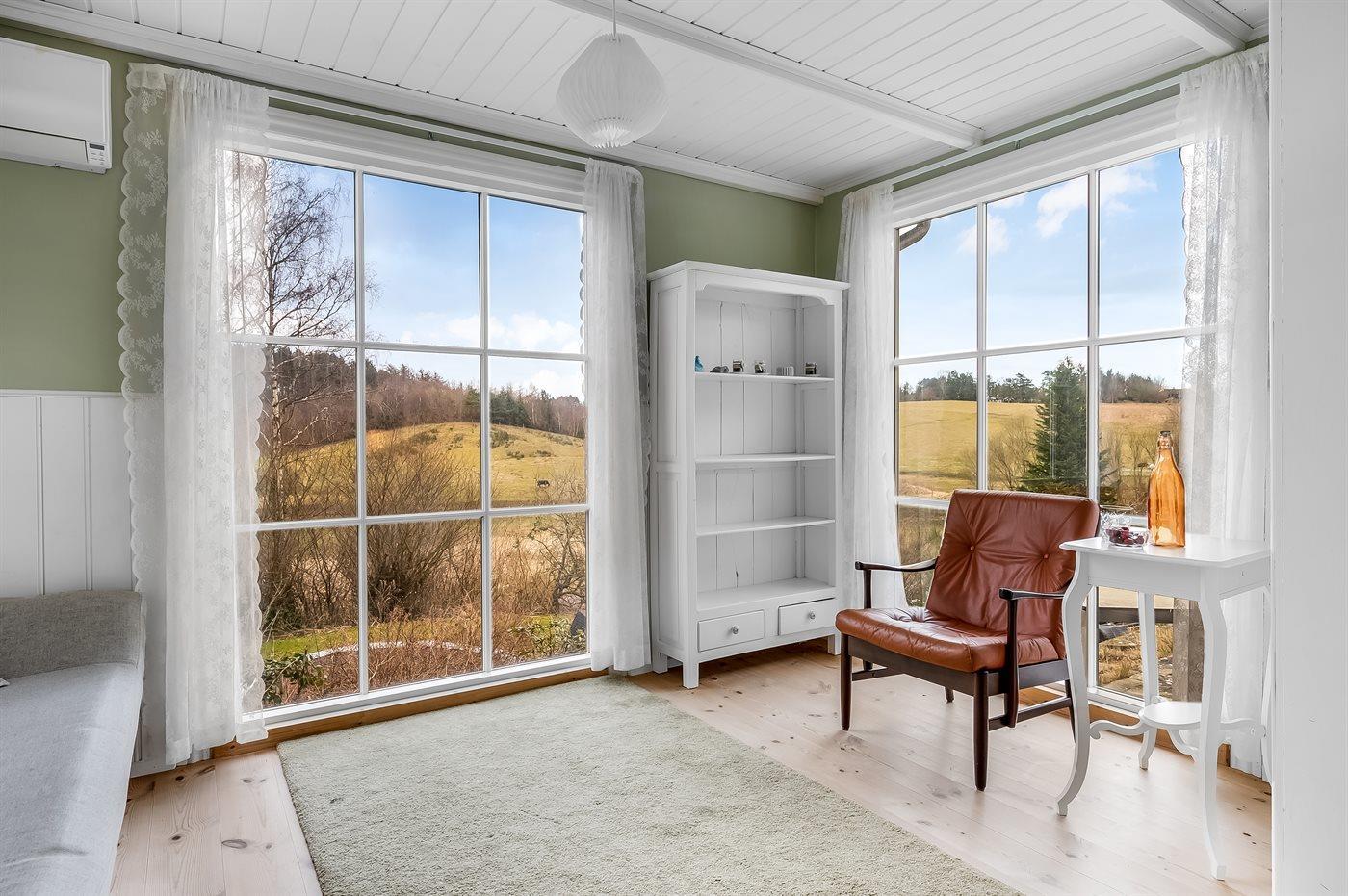Huset byder på en lys og indbydende stue med brændeovn, hvor man kan samles efter en dag med oplevelser. Fra stuen er der adgang til en dejlig udestue, der forlænger sommeren og giver mulighed for at nyde udsigten til haven.