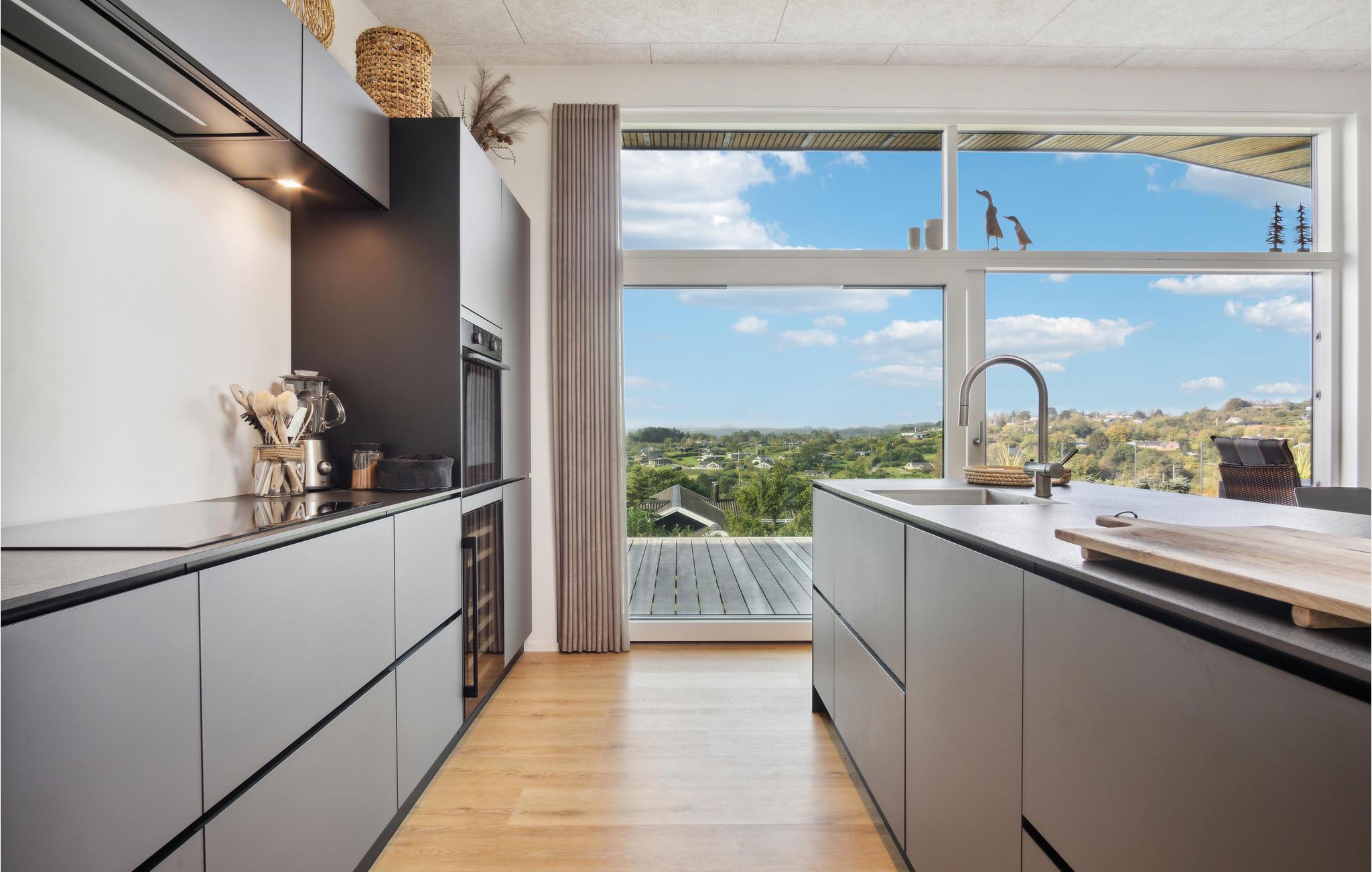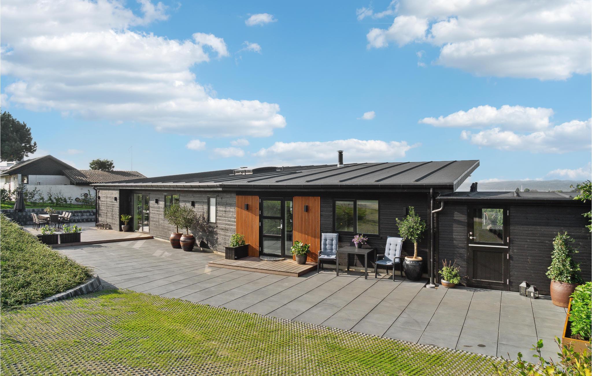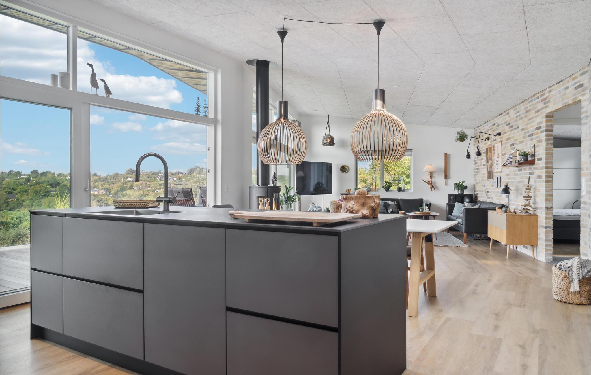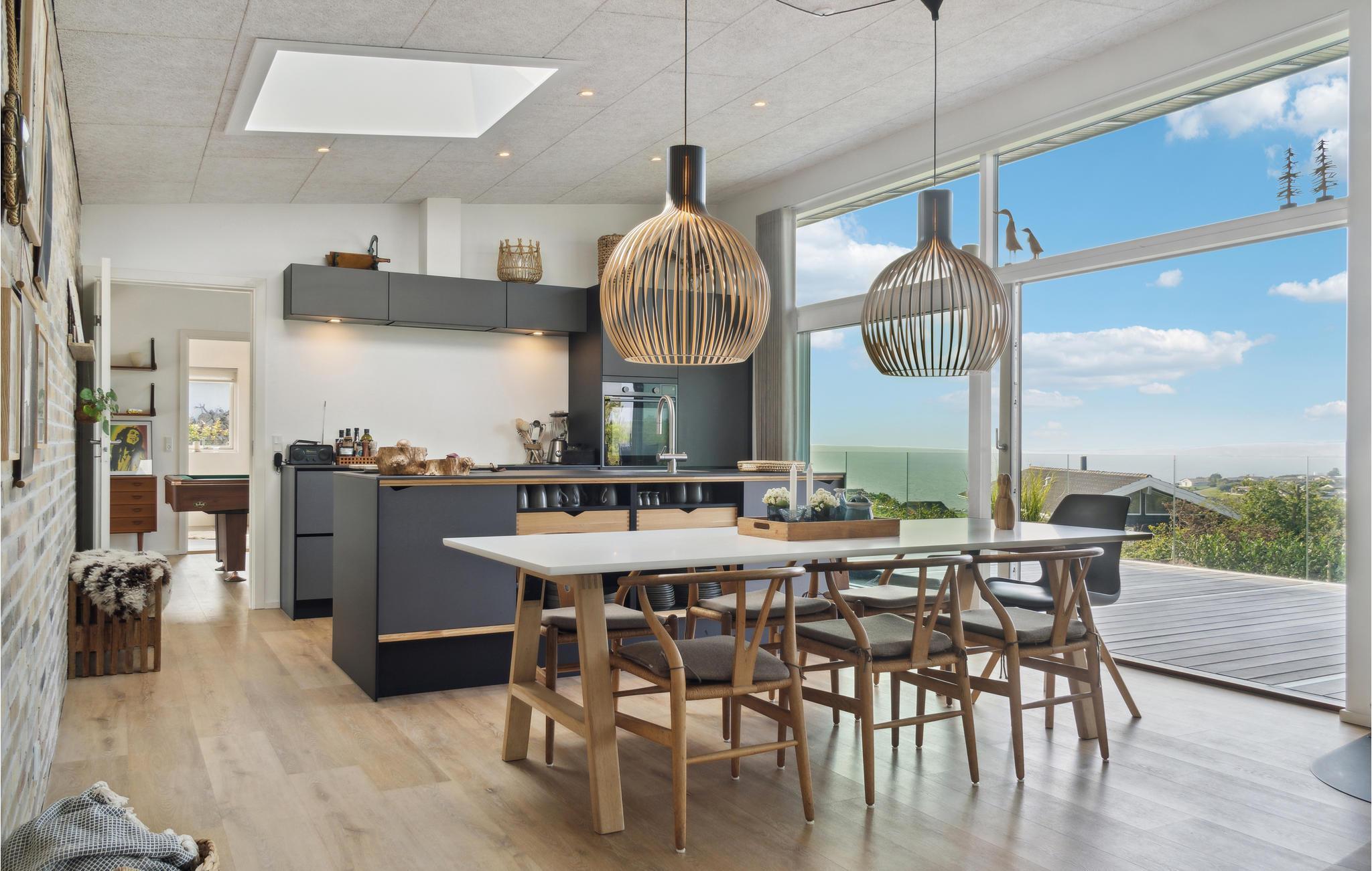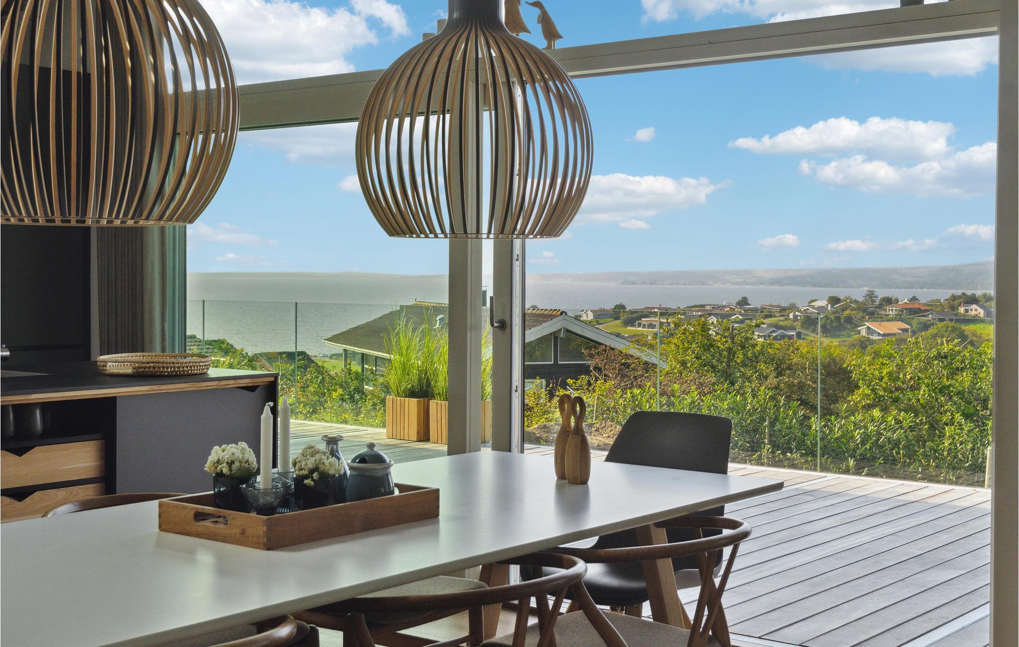 Nyd et moderne feriehus med panoramaudsigt, sauna, whirlpool og nærhed til stranden ved Ebeltoft.