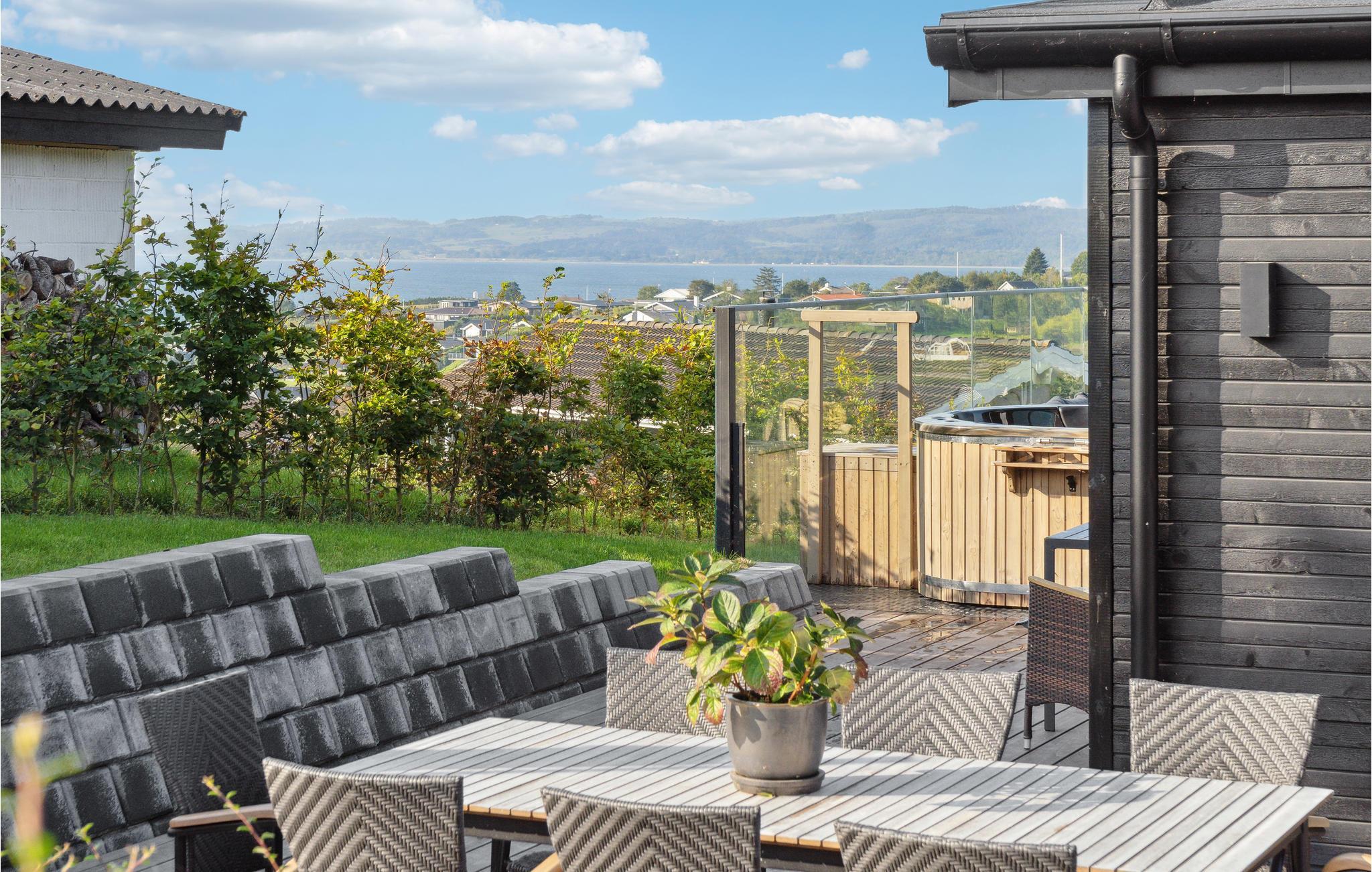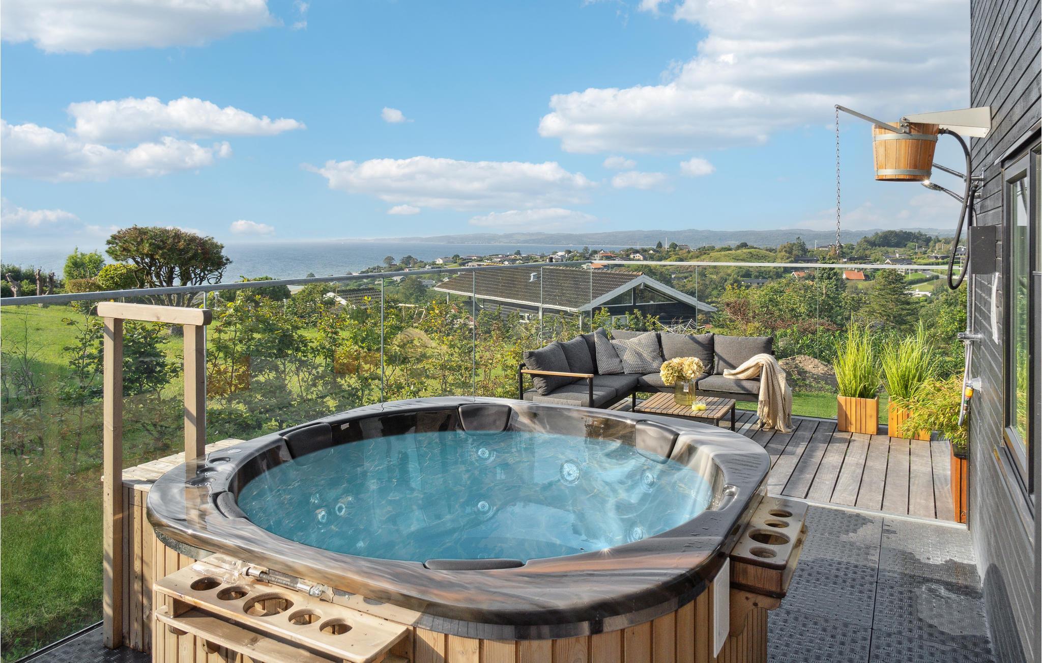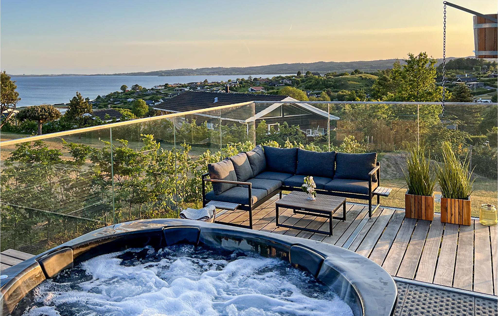 Glæd jer til dette attraktive feriehus med udendørs wellness og storslået havudsigt.