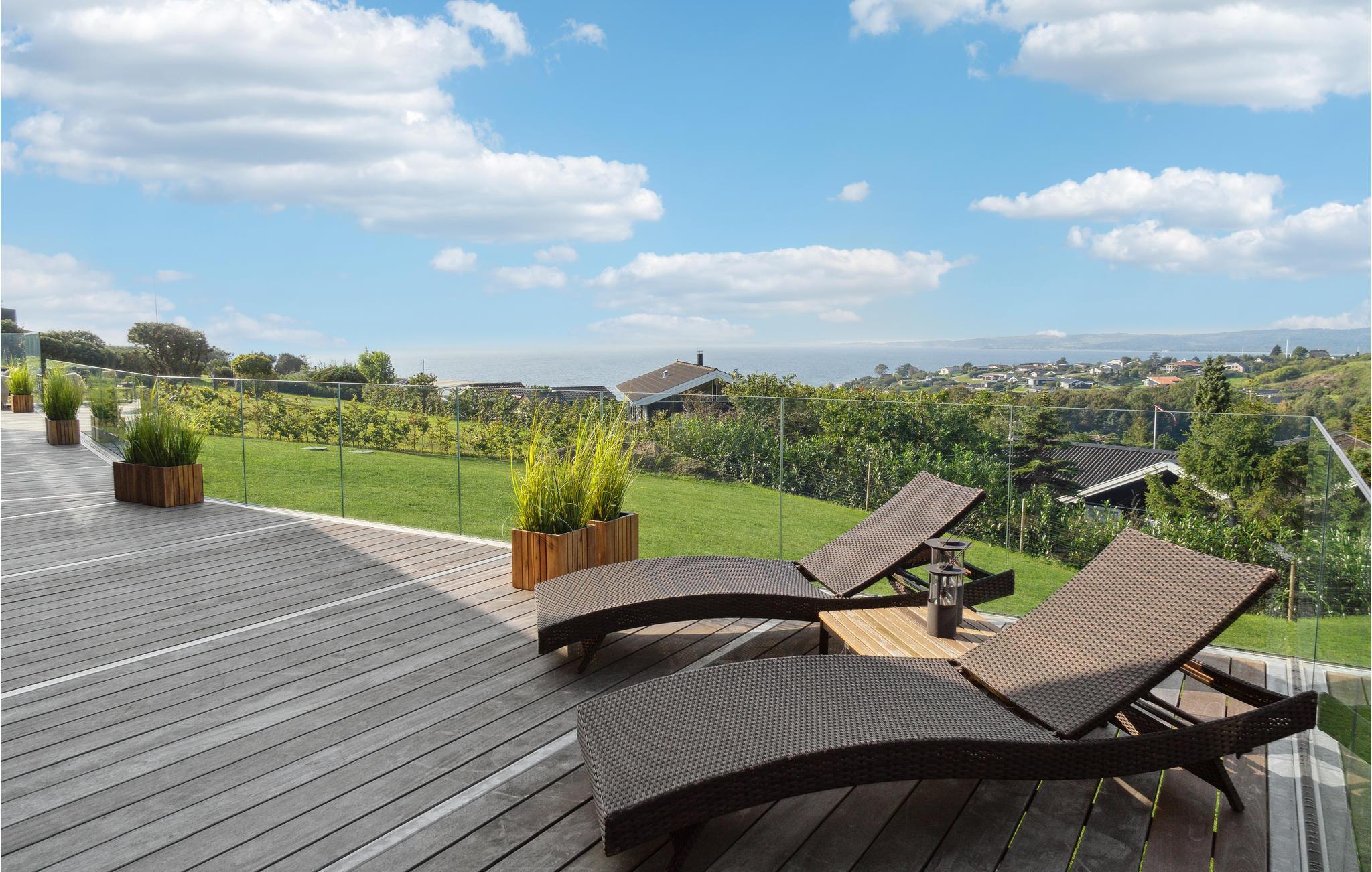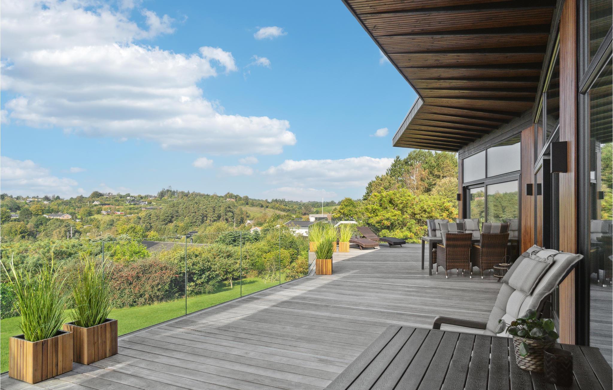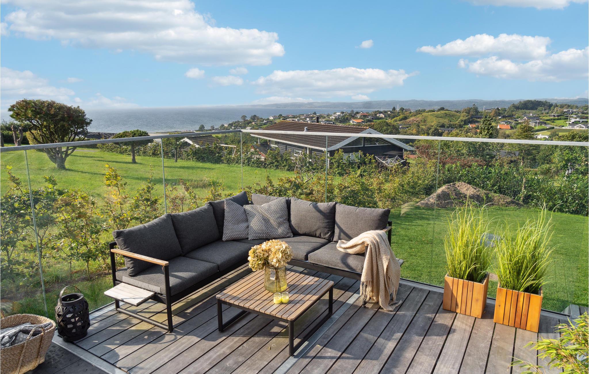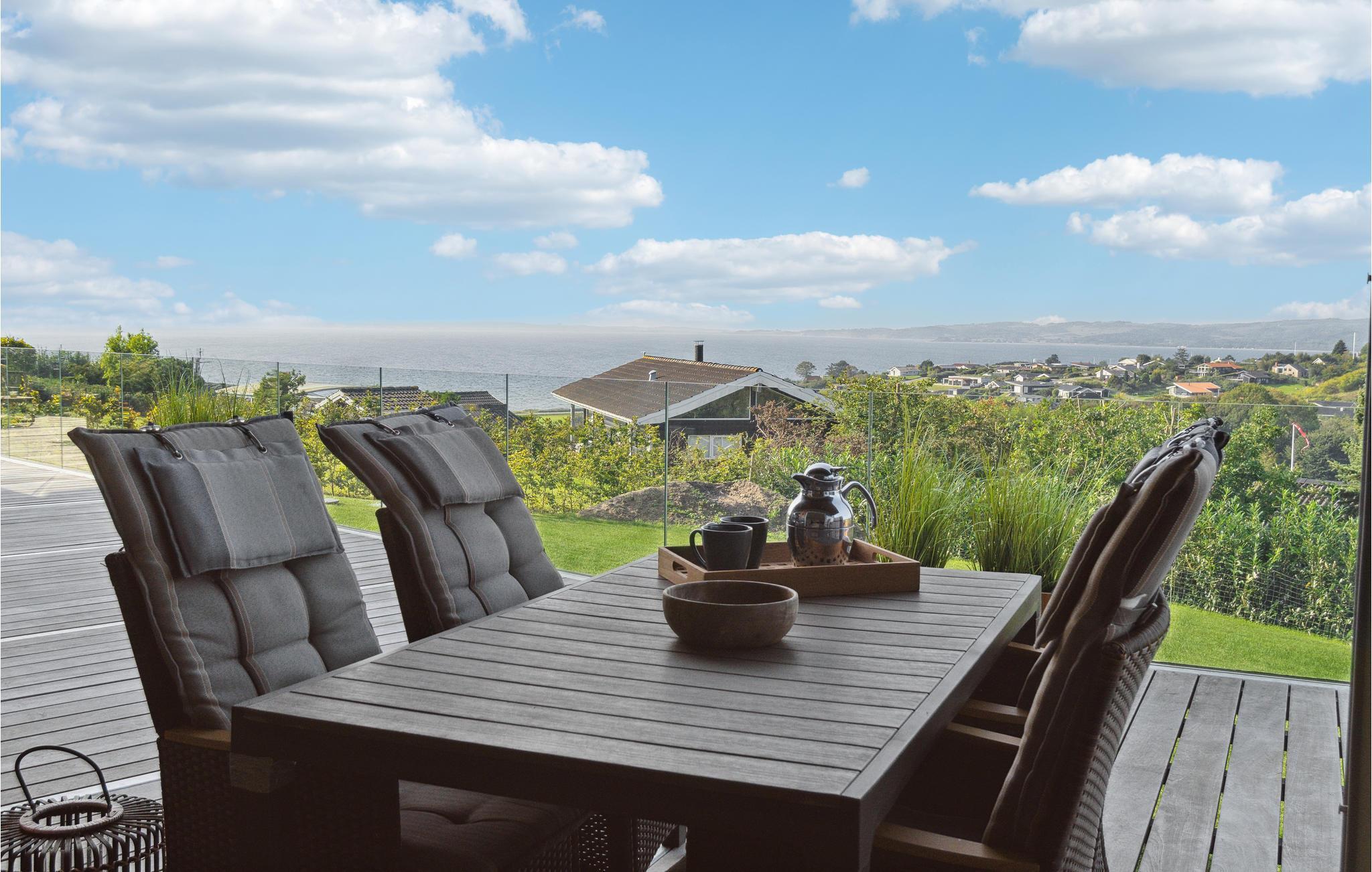 Glæd jer til dette attraktive feriehus med udendørs wellness og storslået havudsigt.