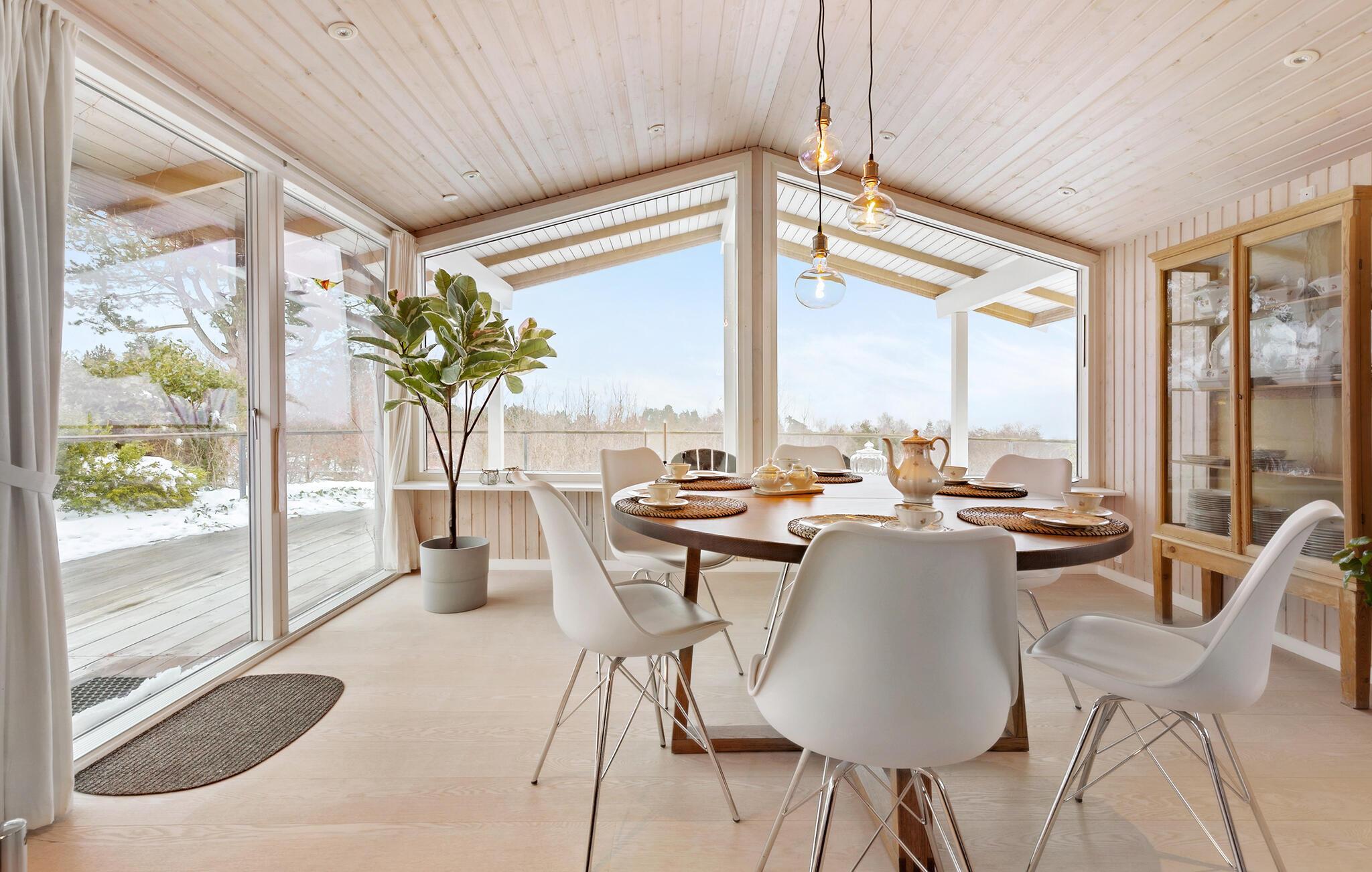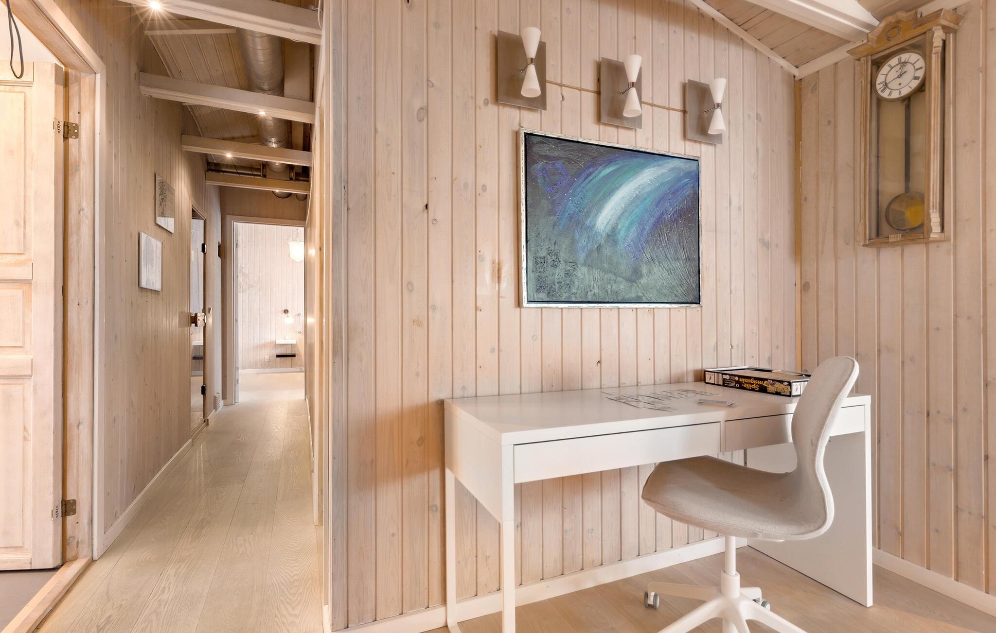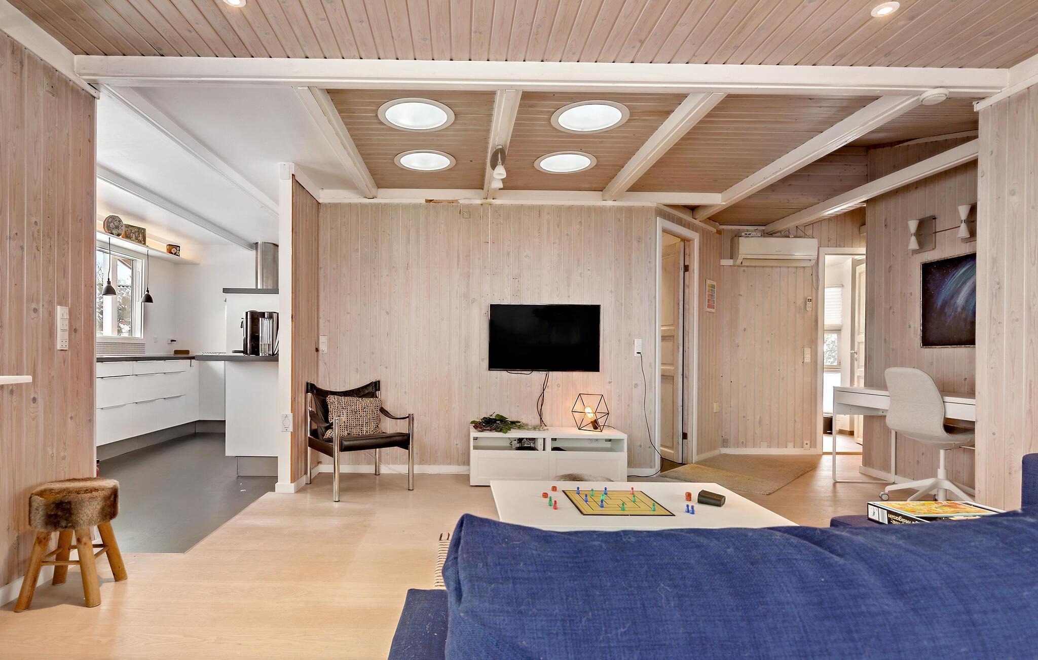 Smid fødderne op i havemøblerne og nyd udsigten! Den storslåede kulisse bliver jeres følgesvend på jeres ferie ved Handrup Strand. I kan også nyde udsigten fra stuen, der får et utrolig flot lysindfald gennem panoramavinduerne. Boligens indretning fremstår både varm, moderne og komfortabel, og ikke mindst i det store fællesrum har I mange hyggeaftener i vente. Nogen kan piske familiens livretter sammen i køkkenet, mens andre læser en god bog i sofaen eller lægger puslespil ved spisebordet.
