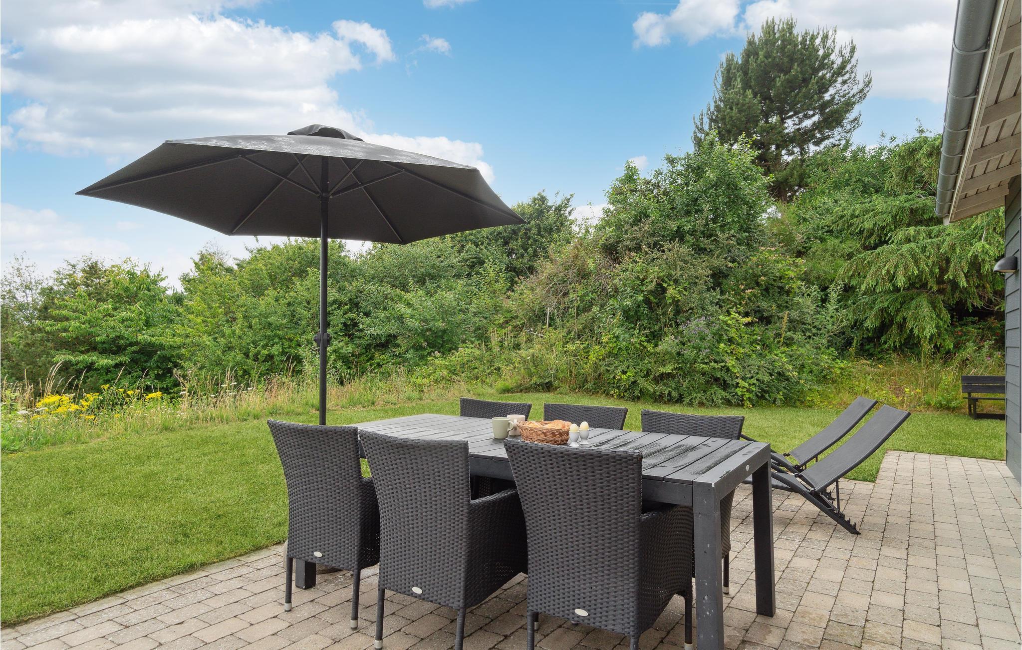 Herfra træder I ud på terrassen og grunden, hvor børnene kan boltre sig på græsset. På dage, hvor sommervejret viser sig fra sin bedste side, er terrassen et dejligt sted at nyde morgenkaffen og senere aftensmad fra grillen. Og så er vildmarksbadet slet ikke nævnt, hvor I kan nyde varmen og en kold forfriskning, mens i lader blikket glide henover det fortryllende landskab.