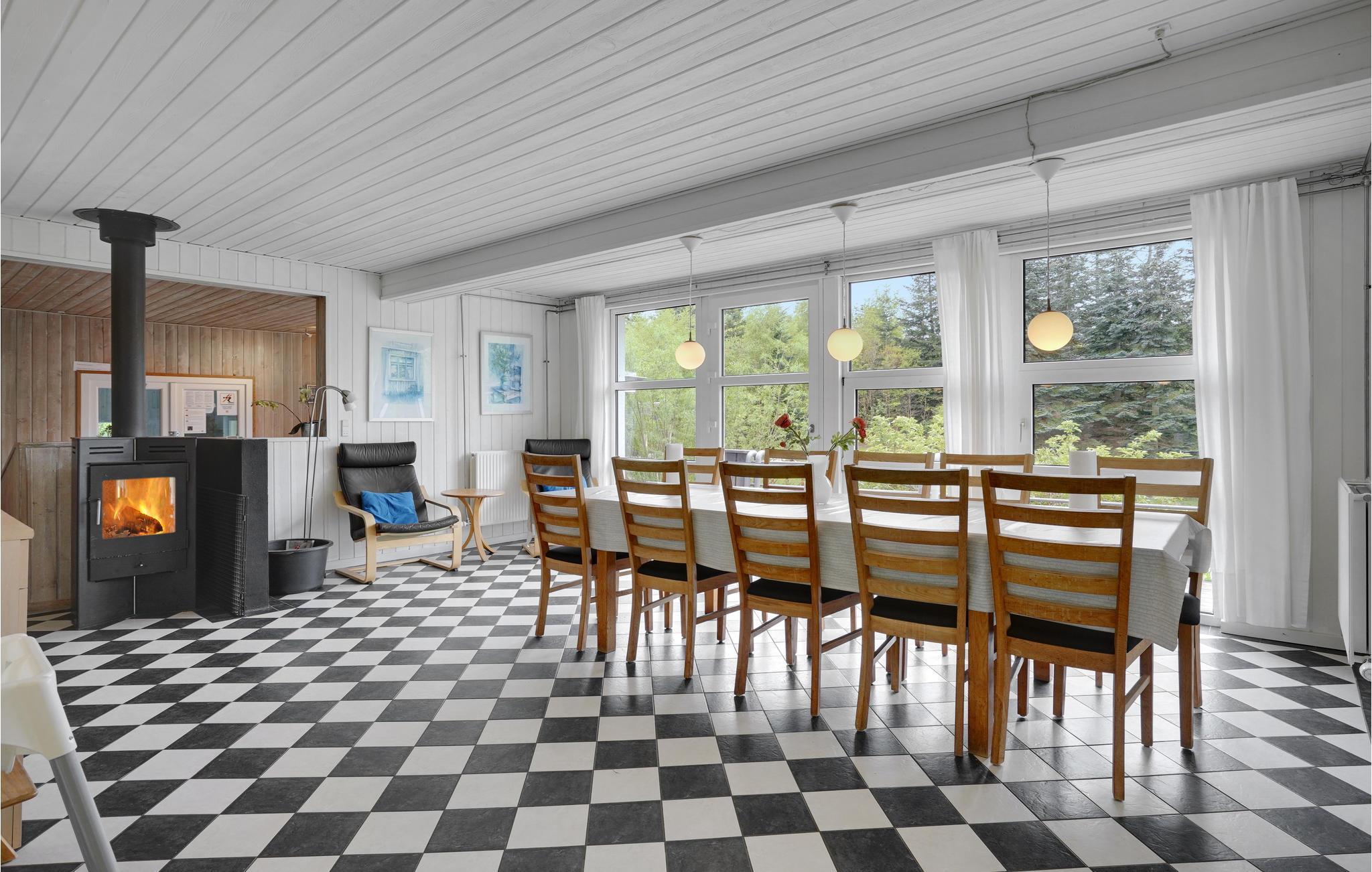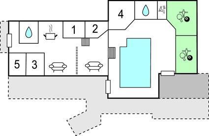 Et virkeligt spændende feriehus. Er I til aktiviteter og en dejlig svømmetur i poolen, så er huset her absolut et godt valg. I det store aktivitetsrum findes der både poolbord, fodboldspil, bordtennis og dart. Feriehuset er beliggende i et stort og skønt naturområde i de flotte Handrup Bakker. Til huset hører en stor grund med masser af plads til boldspil og leg. Huset er med sin størrelse og indretning velegnet til flere familier med det meget stort poolrum, hvor der er plads til både de 'vandglade' og til at sidde og hygge sig sammen. Sydvestvendt terrasse hvor solen kan nydes det meste af dagen. Al opvarmning af såvel huset som poolen foregår meget energi- og miljøvenligt med et jordvarmeanlæg. Brænde kan købes ved huset.