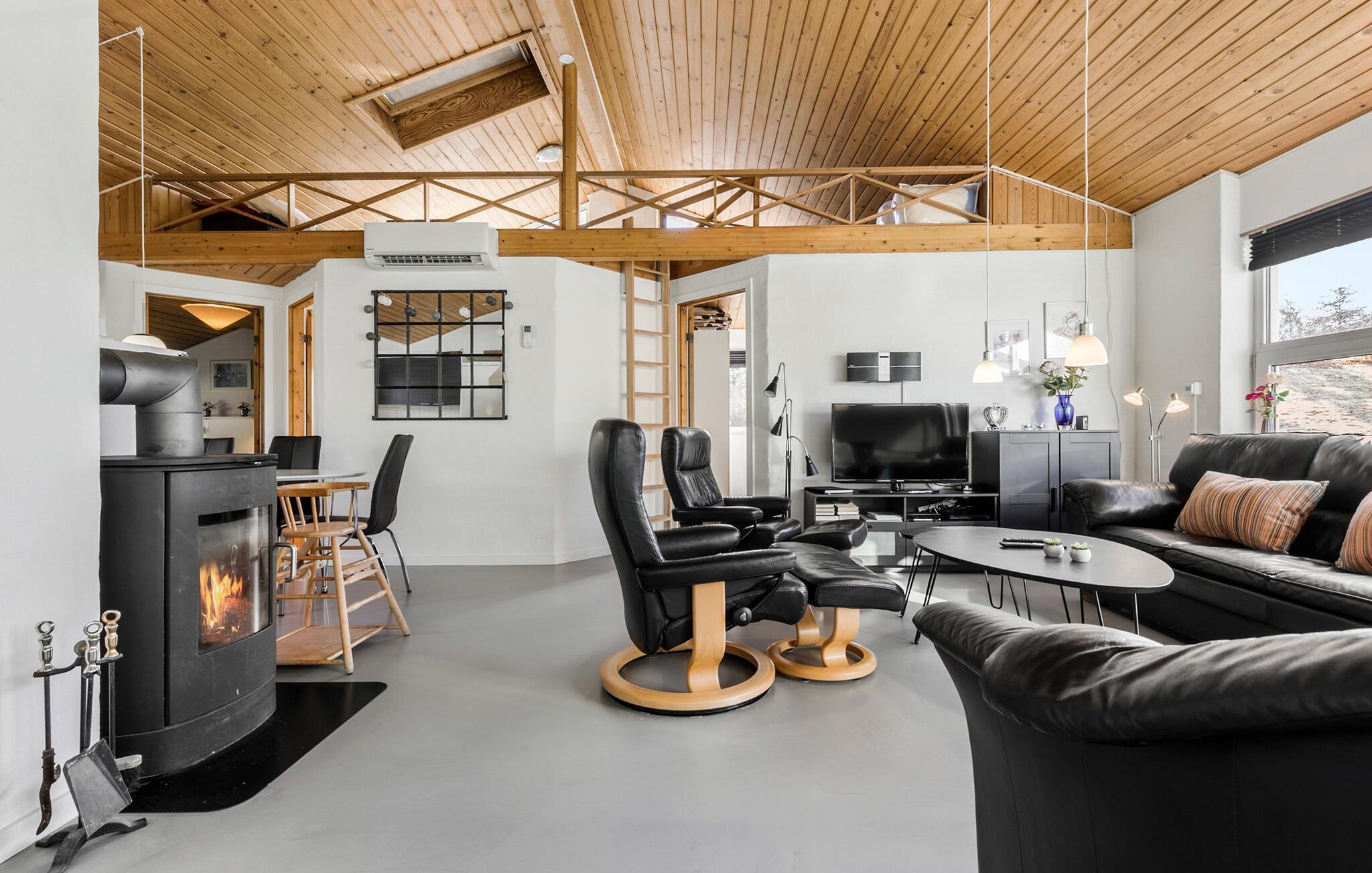 Dette skønne sommerhus indeholder bl.a. en dejlig poolafdeling med både swimmingpool, børnepool og et spabad til fire personer. Fra den hyggelige stue-/køkkenafdeling har I et godt udsyn til poolafdelingen, så I kan holde øje med de badendes leg i poolen, som opvarmes med en energibesparende varmepumpe. Børnene vil elske at opholde sig på den store hems, hvor der er lavet legeområde med bl.a fladskærm, madrasser og masser af puder, hvorfra de også kan kigge ned i stuen.