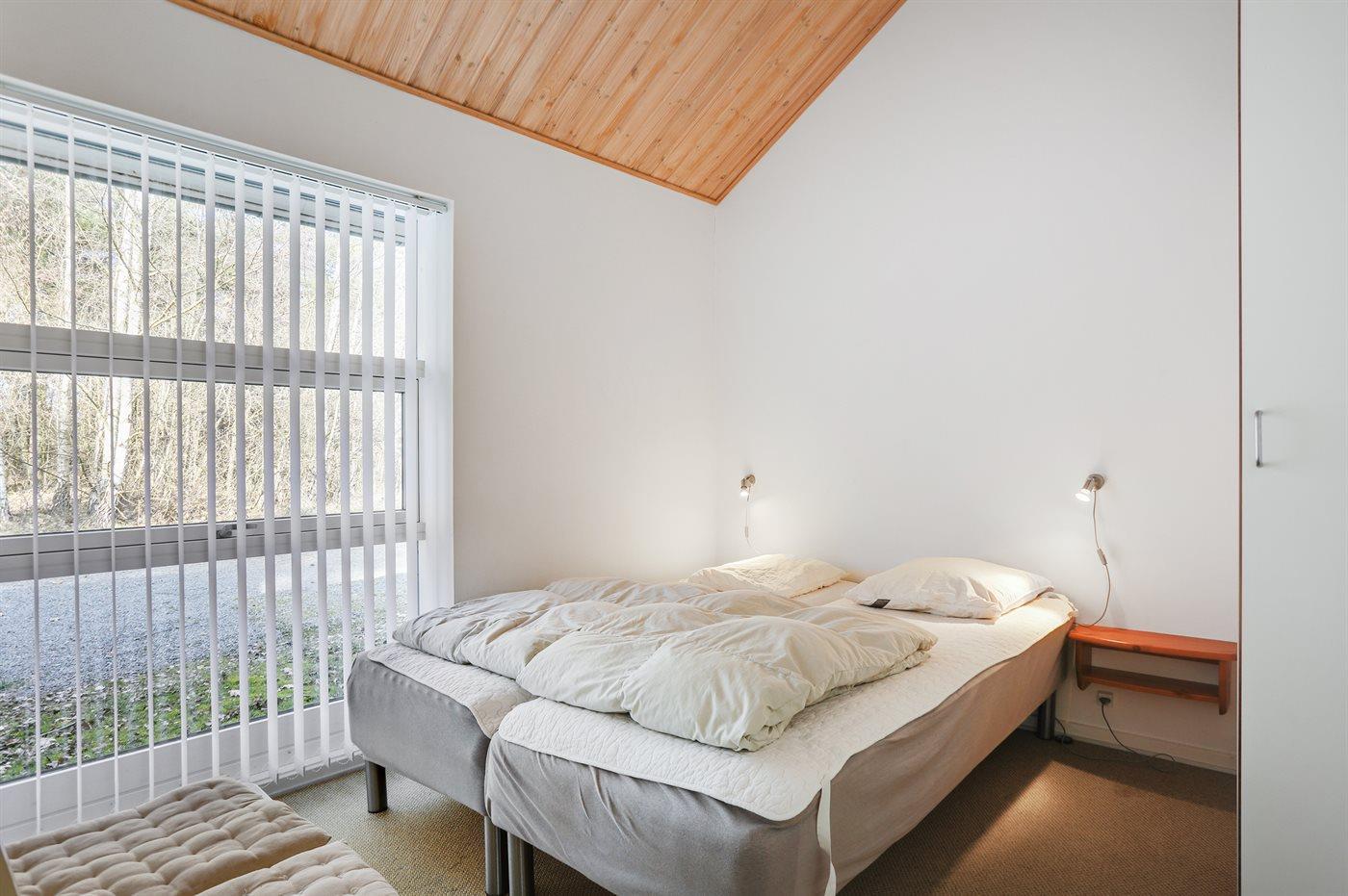 Der er i alt 4 soveværelser. Sovepladserne fordeler sig på: 6 sovepladser i dobbeltsenge. 2 sovepladser i enkeltsenge. 2 sovepladser på madrasser. 2 af disse sovepladser befinder sig på husets hems. Derudover er der 1 stk. barneseng.