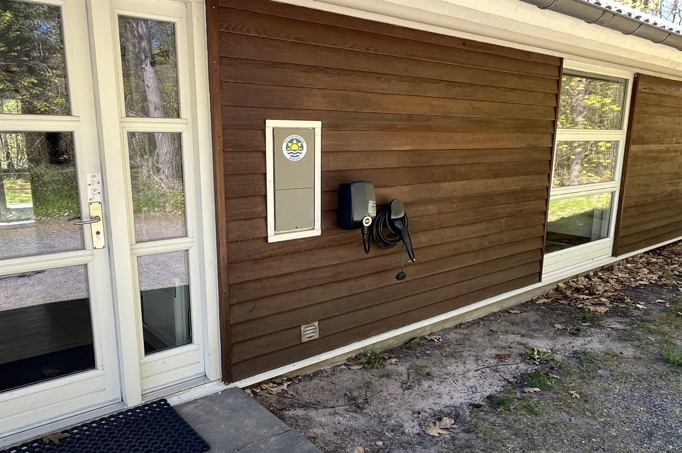 Ferieboligen er beliggende på en 1250 m² stor naturgrund. Der er 600 m til havet. Nærmeste forretning er beliggende i en afstand af 1500 m. Der er en golfbane i en afstand af 12000 m. Til ferieboligen hører åbent terrasseareal. Desuden er der overdækket terrasse. Grill til rådighed. Der er installeret stik til opladning af elbil. Type 2 stik. Parkering ved ferieboligen.