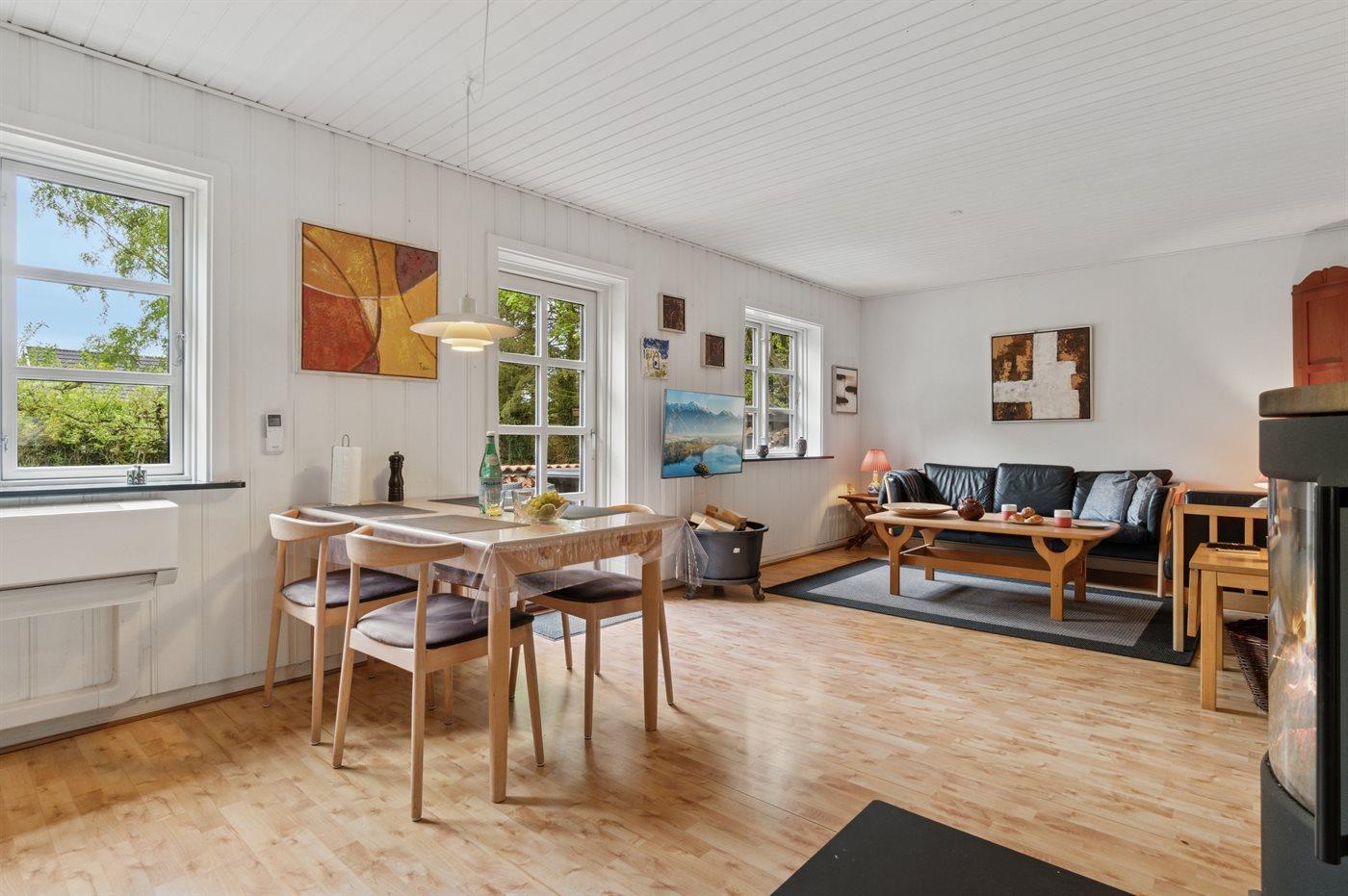 Fra sommerhusets lille terrasse kan solen nydes sammen med eftermiddagskaffen. I det velfungerende køkken kan man forberede familiens måltider i fred og ro. Stuen er hyggelig med et lyst interiør og god sofagruppe, når familien skal se TV. Soveværelserne er store og rummelige og ligger i hver sin ende af huset. Godt badeværelse.