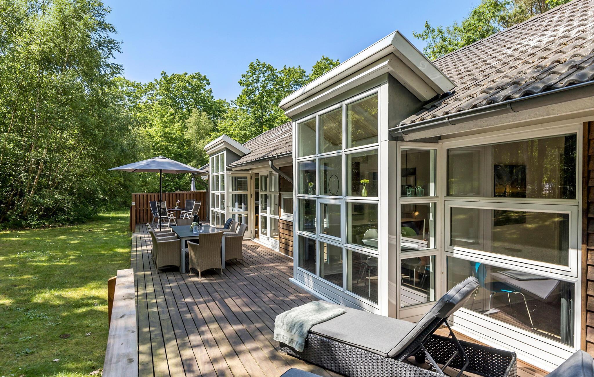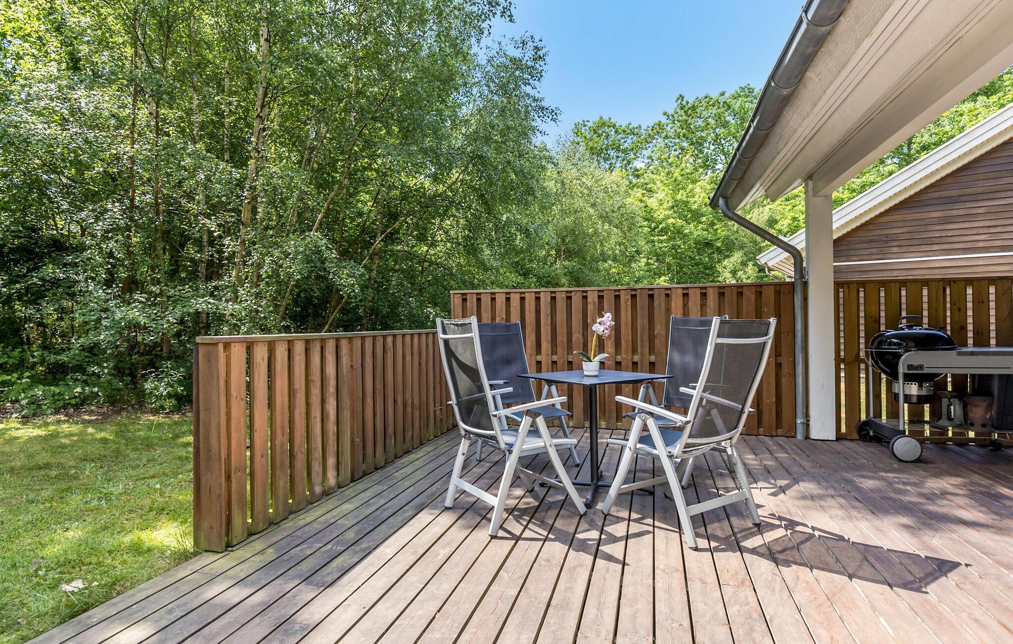 På de varme dage kan I nyde solen og lade børnene lege på den store naturgrund og på terrassen. Her finder I også grillen, hvor I kan tilberede familiens livretter under aftensolen og skylle ned med et godt glas vin.