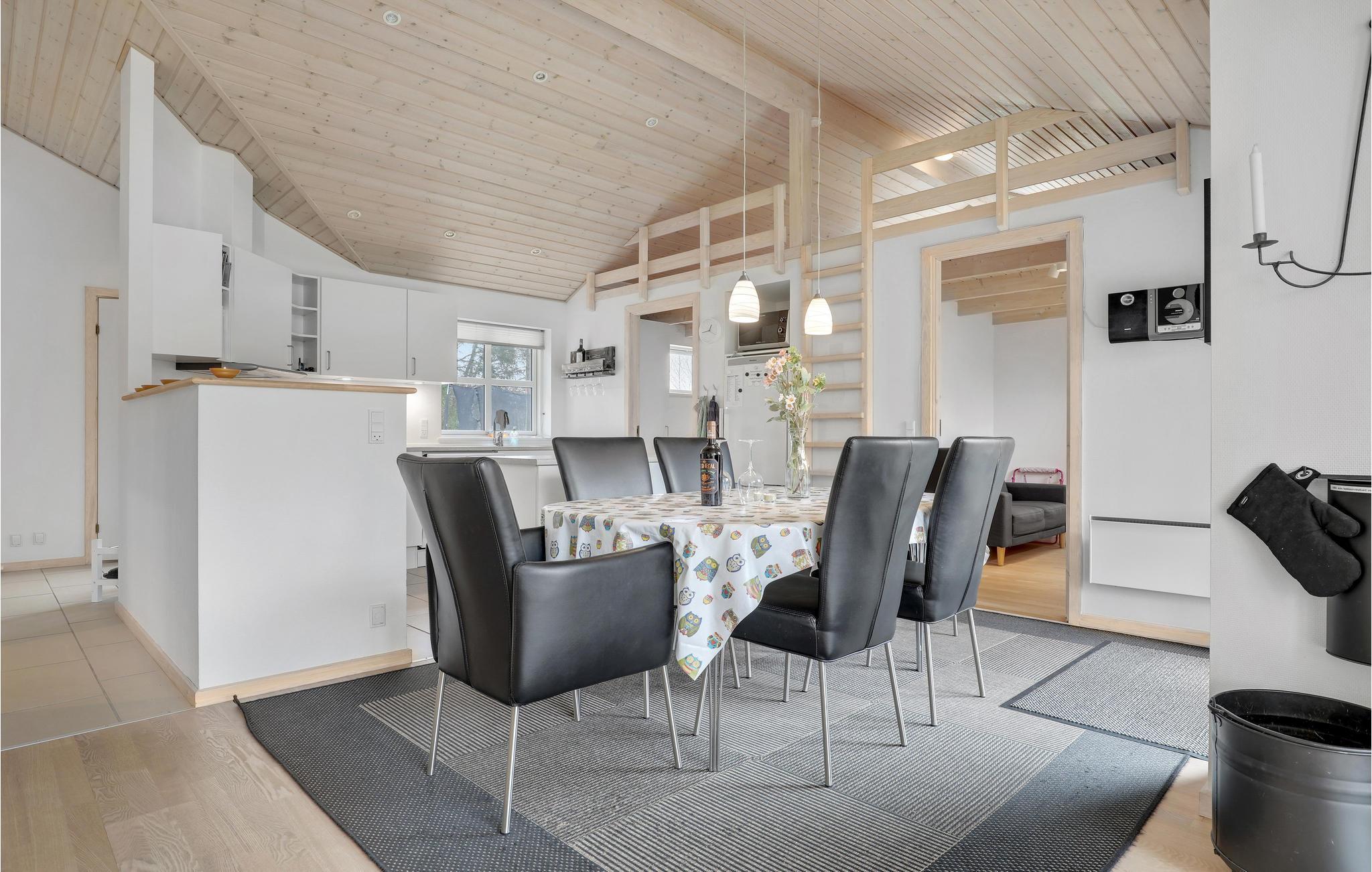Dette dejlige feriehus fremtræder lyst og moderne indrettet med pænt åbent køkken, en nydelig kombineret spise- og opholdsstue med komfortable møbler. Dette skønne feriehus er i 2021 blevet udbygget med en ekstra afdeling med plads til lille kontor/boghjørne, ligesom der til outdoor-elskere er mulighed for at bruge det lækre vildmarksbad og bare slappe af med udsigt til stjernehimmel, for den heldige. Sommerhuset byder også på 3 gode soveværelser og et dejlig stort badeværelse med badekar. Her er naturligvis også gratis internet samt varmepumpe og brændeovn. Fra stuen er der udgang til en dejlig stor træterrasse, hvor mange feriestunder kan nydes.