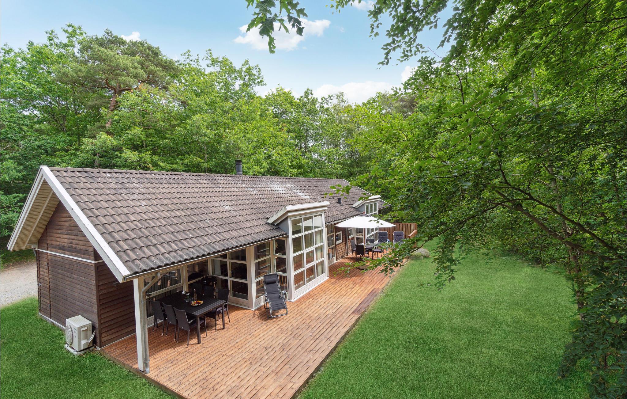 Moderne feriehus i smuk skov ved Rubinsøen med spabad og sauna tæt på børnevenlig sandstrand.