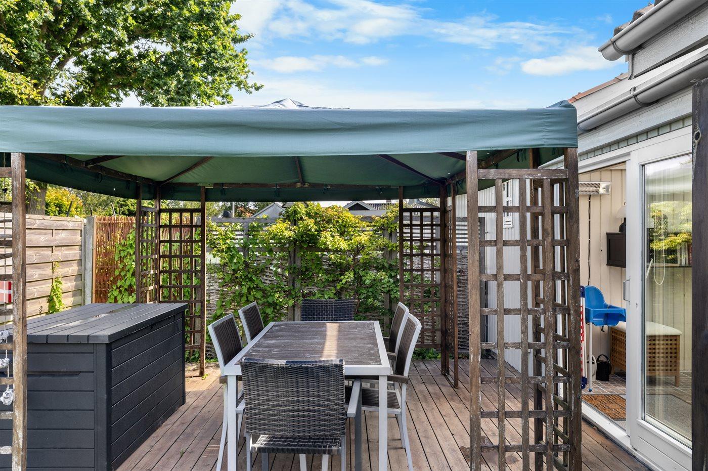 Der findes en skøn sydvendt have med flere aktiviteter for børn og voksne, og flere gode terrasseområder, hvoraf det ene er overdækket ved hjælp af en pavillon.
