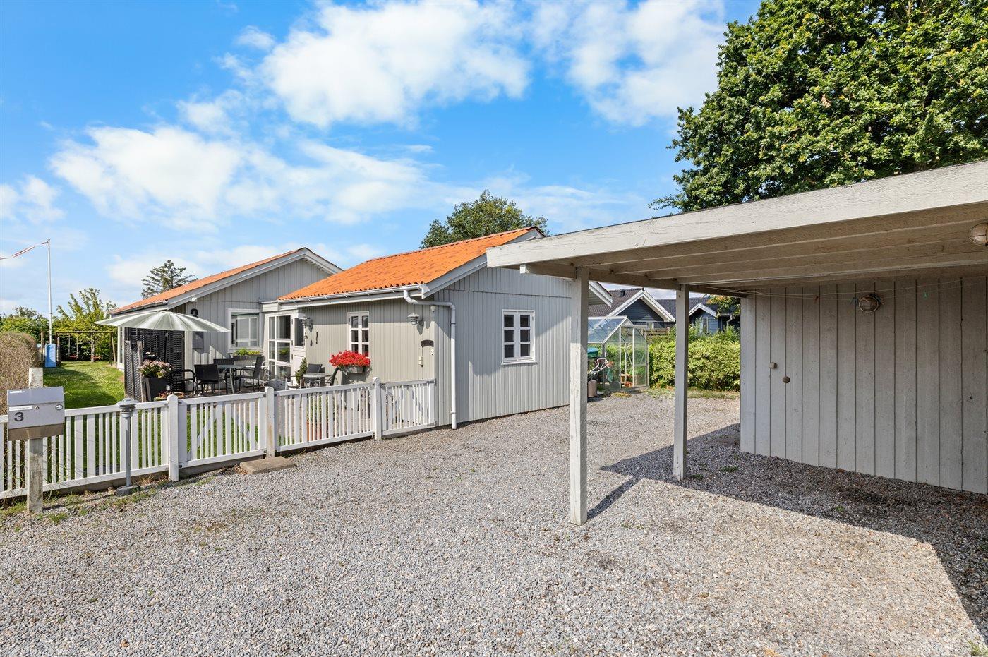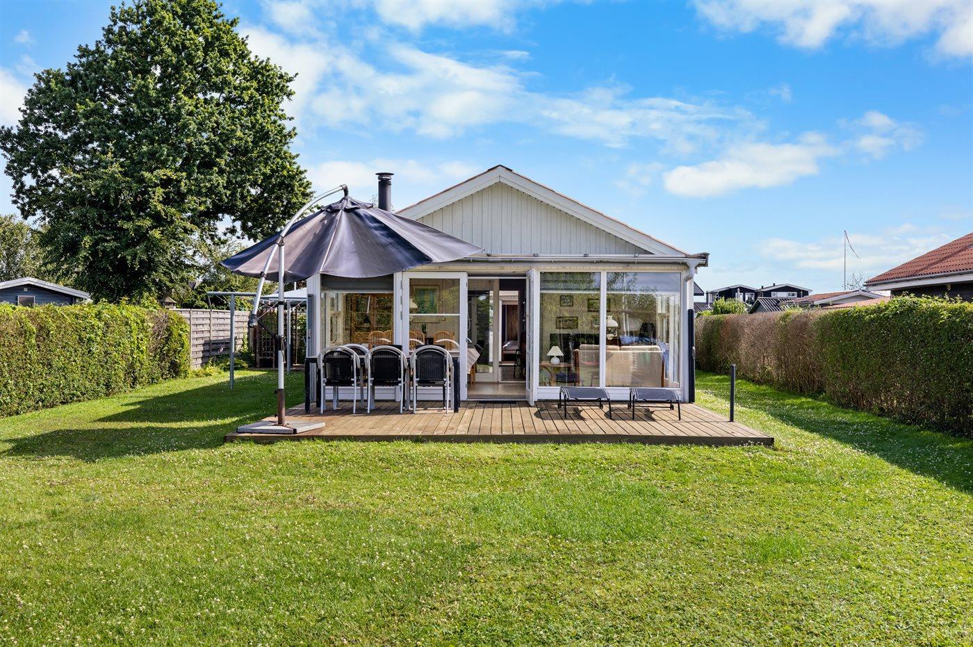 Ferieboligen er beliggende på en 734 m² stor havegrund. Grunden er indhegnet. Der er 100 m til havet. Nærmeste forretning er beliggende i en afstand af 3700 m. Til ferieboligen hører åbent terrasseareal. Desuden er der overdækket terrasse. Ligeledes er der adgang til udestue. Gynge. Sandkasse. Legehus. Bålsted. Udendørs bruser. Grill til rådighed. Der er carport til rådighed. Parkering ved ferieboligen.