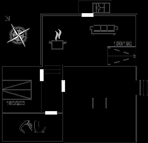 Der er i alt 1 soveværelse. Sovepladserne fordeler sig på: 2 sovepladser i dobbeltseng. 2 sovepladser i sovesofa (dobbelt). 2 sovepladser på madrasser. 2 af disse sovepladser befinder sig på husets hems, og 2 andre af disse sovepladser befinder sig i stuen.
