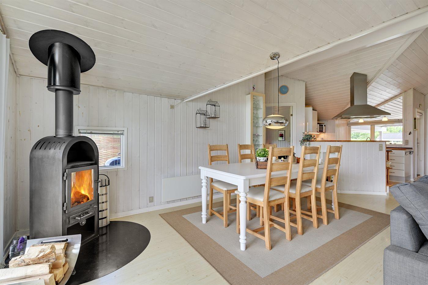 Sommerhuset egner sig til 8 personer. Ferieboligen er på 91 m² og er bygget i 2000. Det er tilladt at medbringe 1 husdyr. Ferieboligen er udstyret med energibesparende varmepumpe. Ferieboligen har vaskemaskine. Frysekapacitet på 60 liter. Der er desuden brændeovn. Til de små er der 1 stk. barnestol.