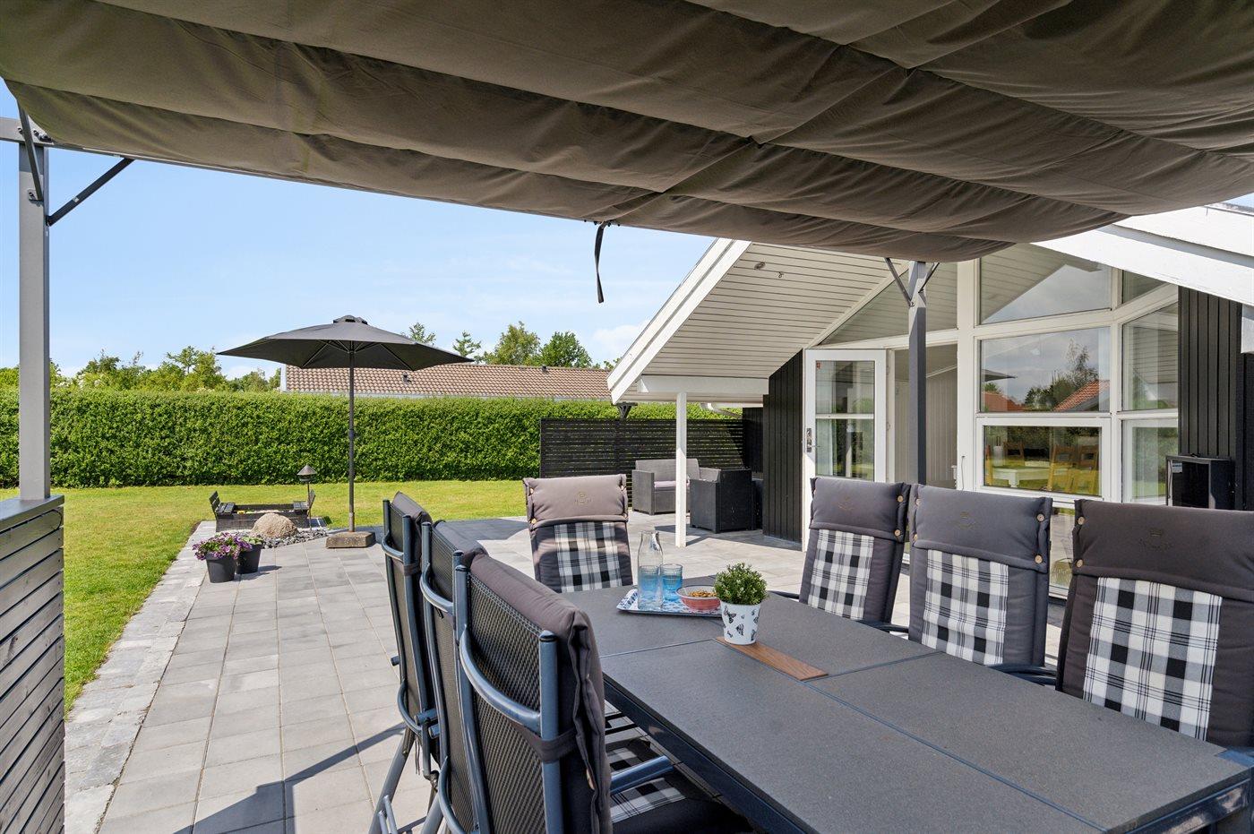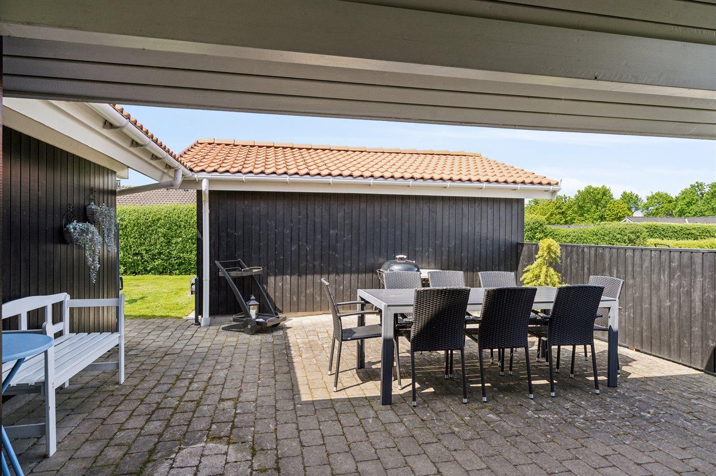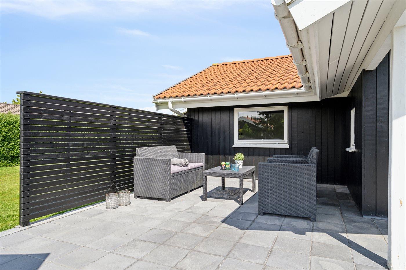 Ferieboligen er beliggende på en 1050 m² stor havegrund. Der er 200 m til havet. Nærmeste forretning er beliggende i en afstand af 7000 m. Til ferieboligen hører 50 m² terrasseareal. Bålsted. Grill til rådighed. Parkering ved ferieboligen.