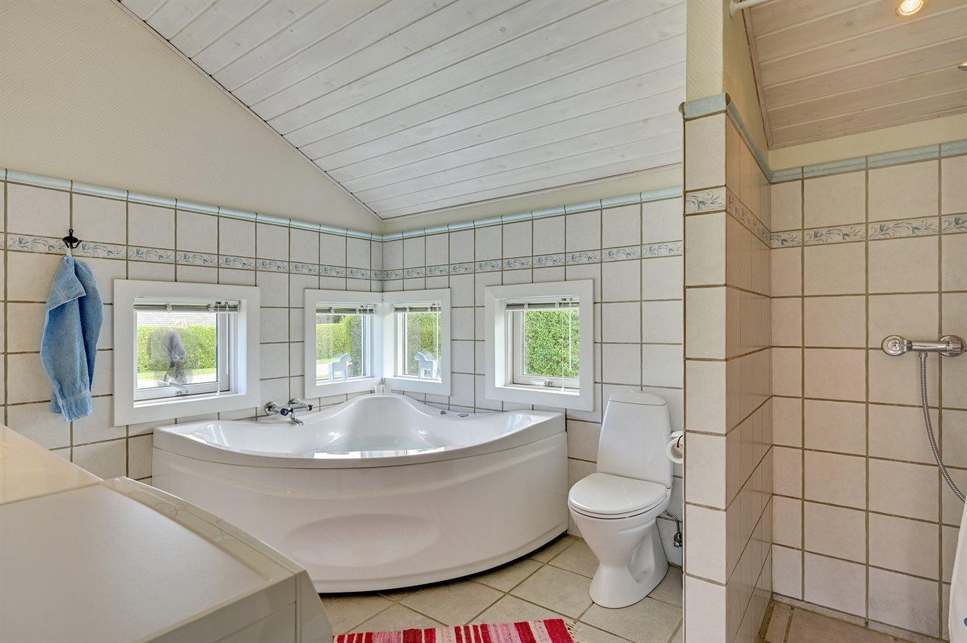 Der er 2 badeværelser med bruseniche og 2 toiletter I saunaen er der mulighed for afslapning.