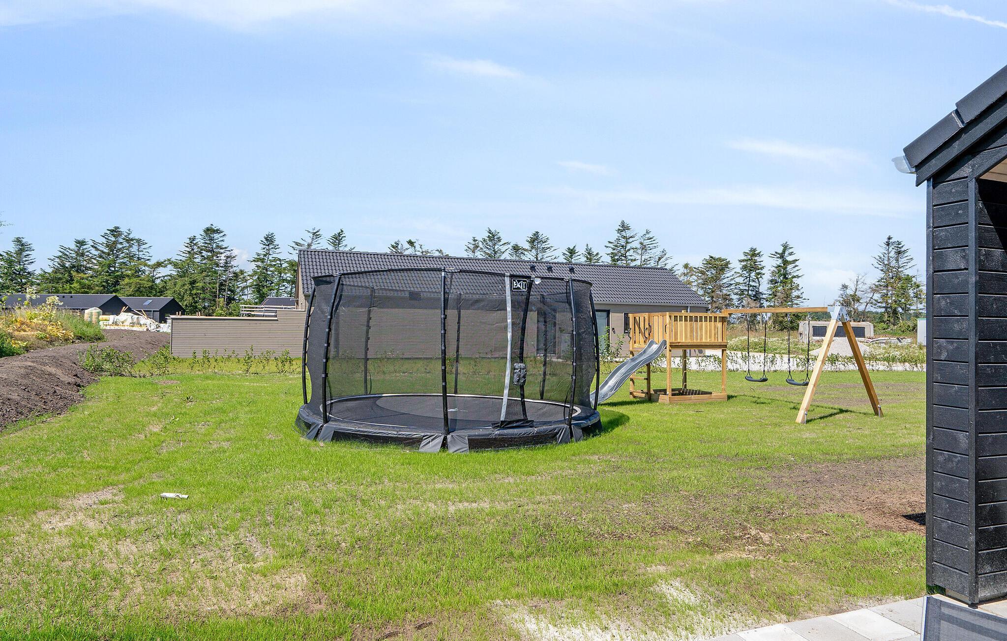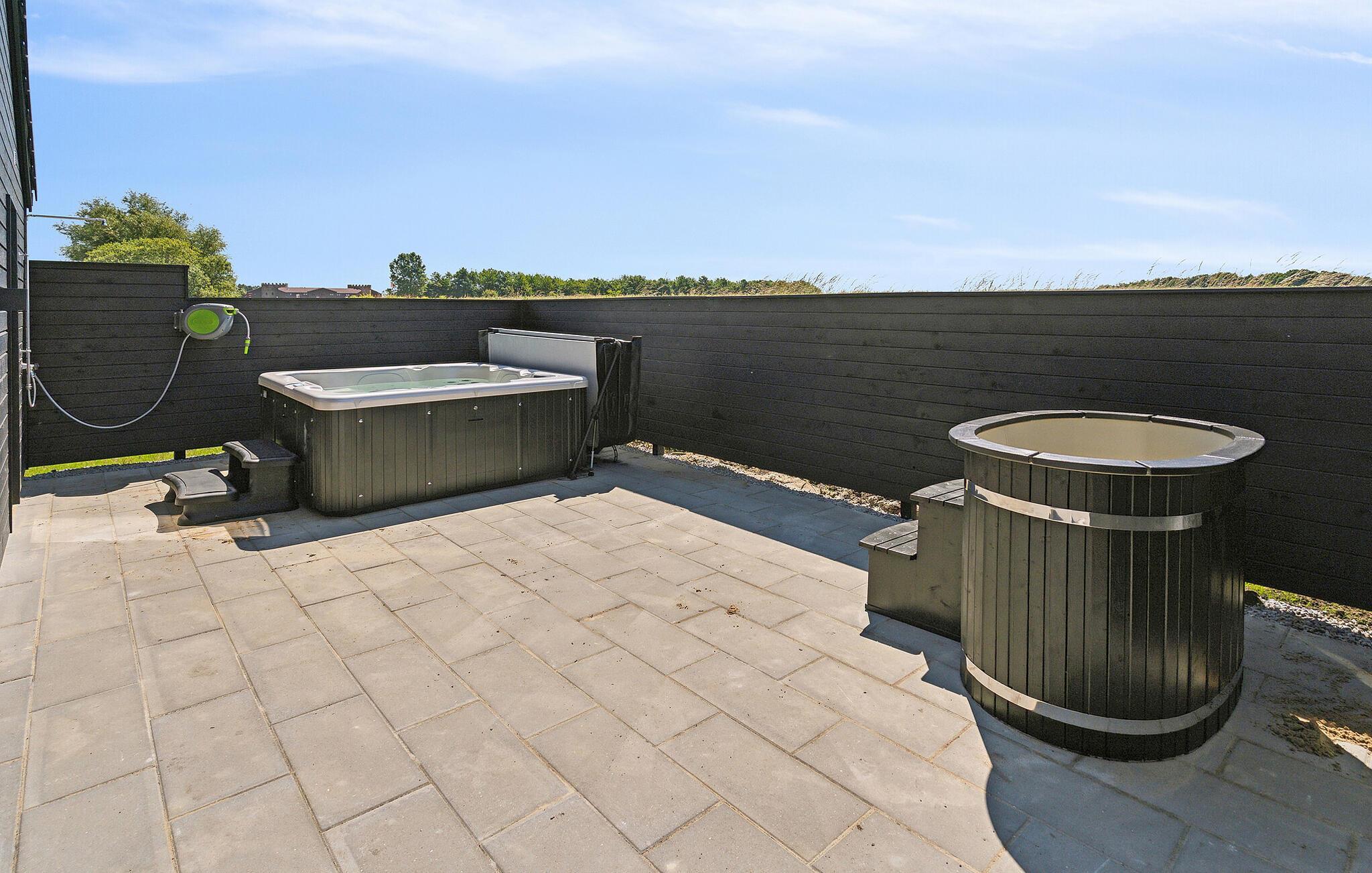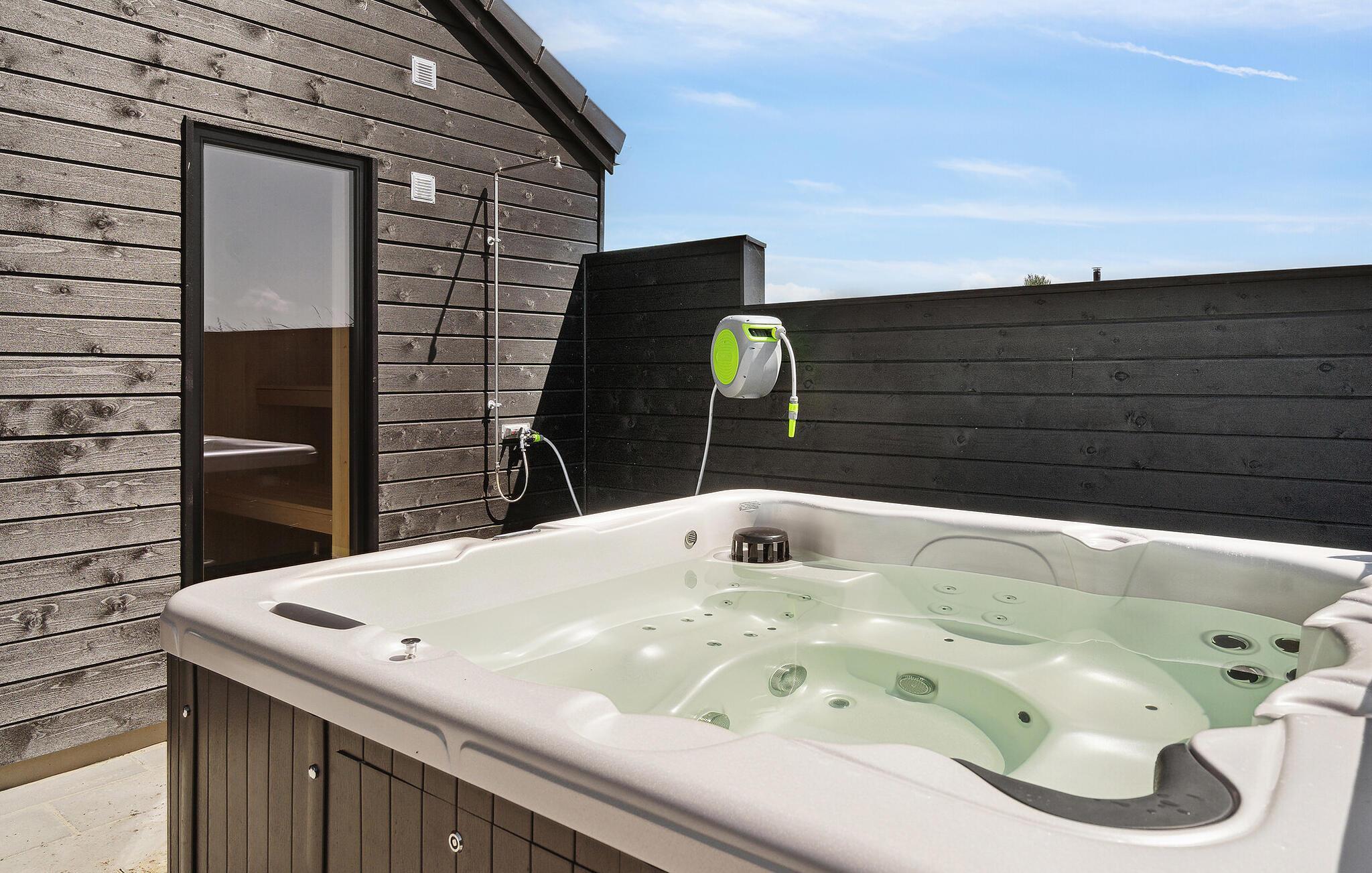 Slap af på terrassen i husets wellness-område med udendørs spabad, koldtvandspool for de modige, udendørs bruser og sauna. Nyd måltiderne udendørs og benyt de komfortable havemøbler og grill. Mens de voksne slapper af, leger børnene på trampolinen i haven, gynger eller boltrer sig i legetårnet.